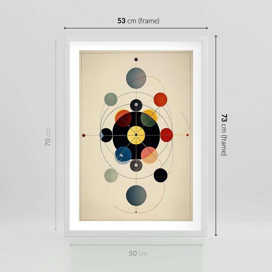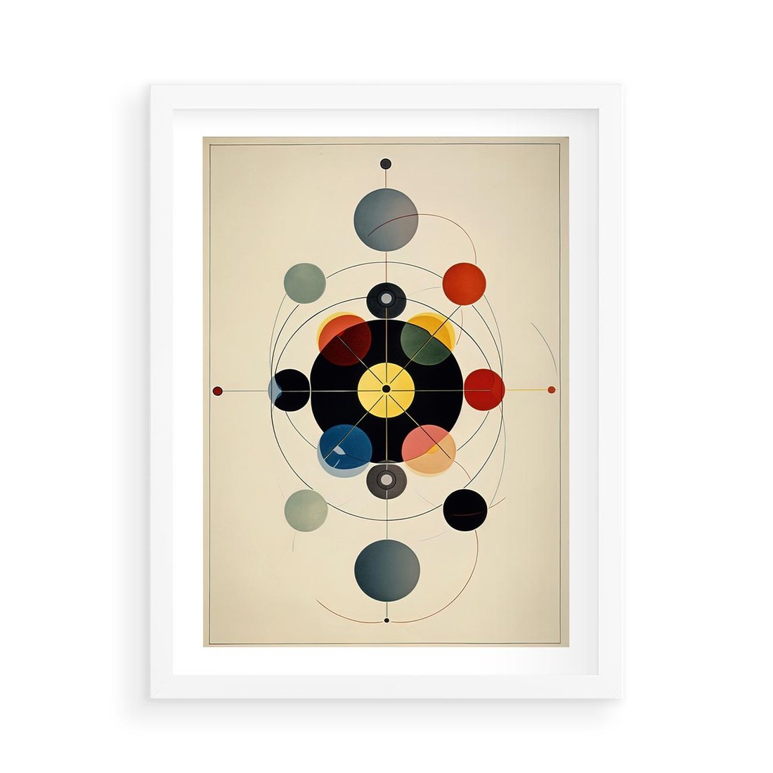 Plakat w ramie 50x70 - Bezgraniczny Taniec Światła - abstrakcyjna geometryczna kompozycja, koła linie - rama biała