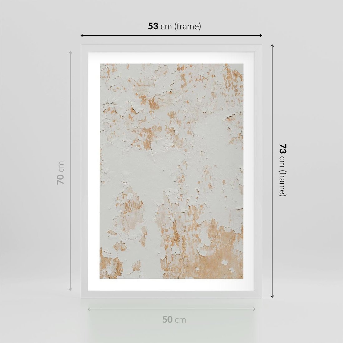 Plakat w ramie 50x70 - Beżowa Ściana z Łuszczącą Się Farbą - stara ściana, beżowa - rama biała