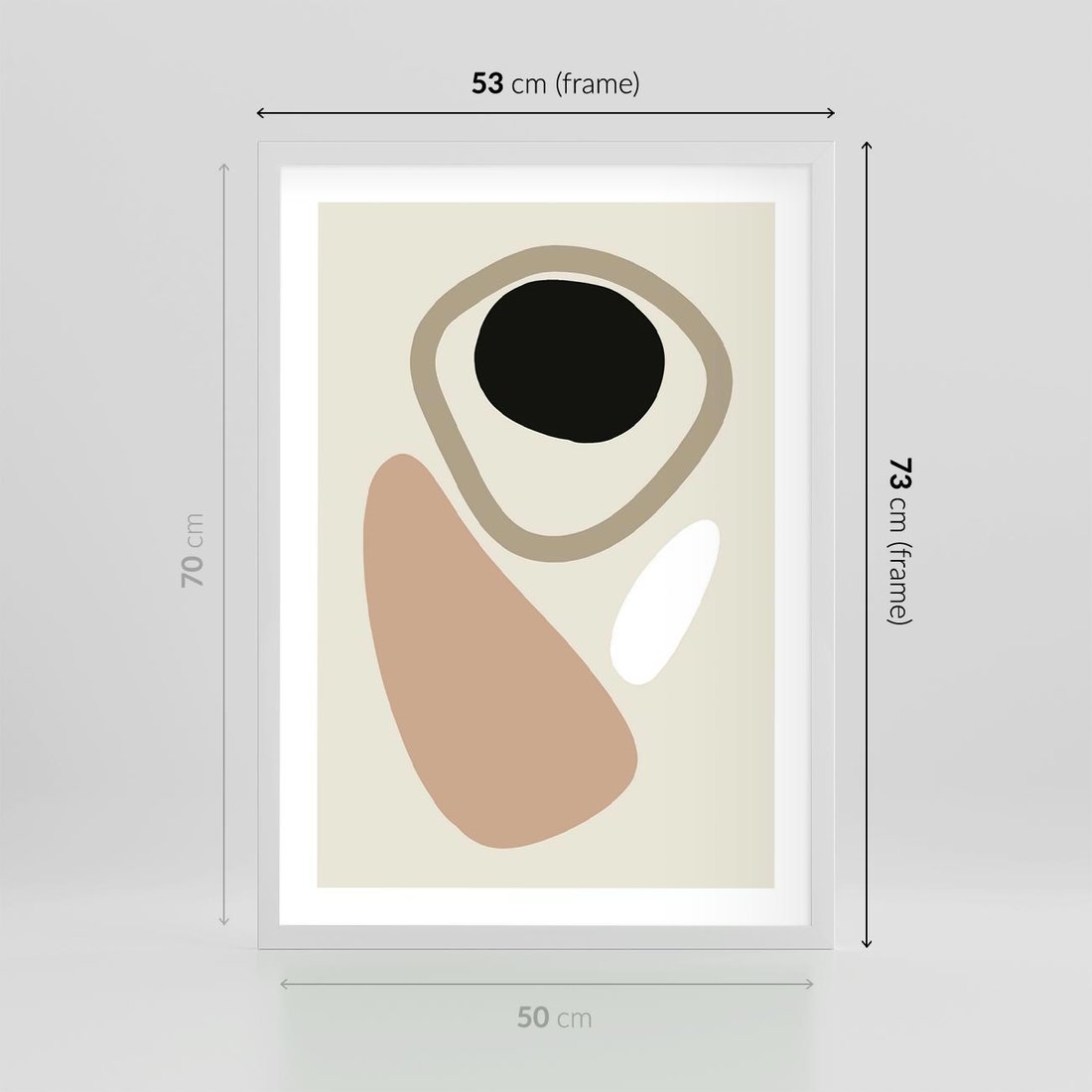 Plakat w ramie 50x70 - Beżowa Synergia - beżowa abstrakcyjna kompozycja, czarny akcent - rama biała