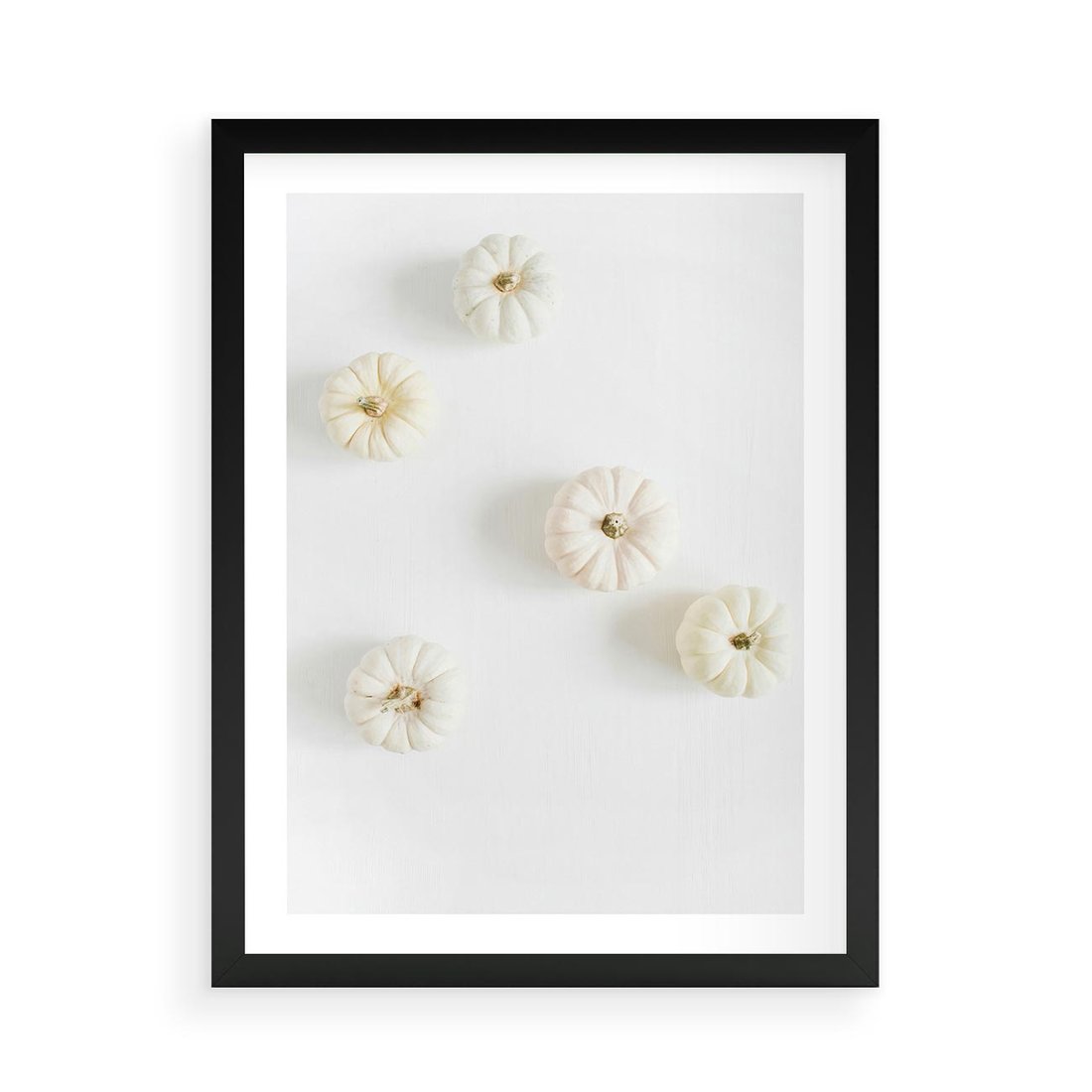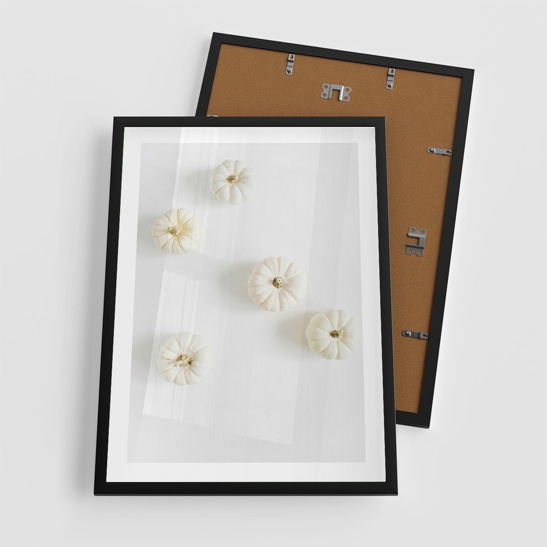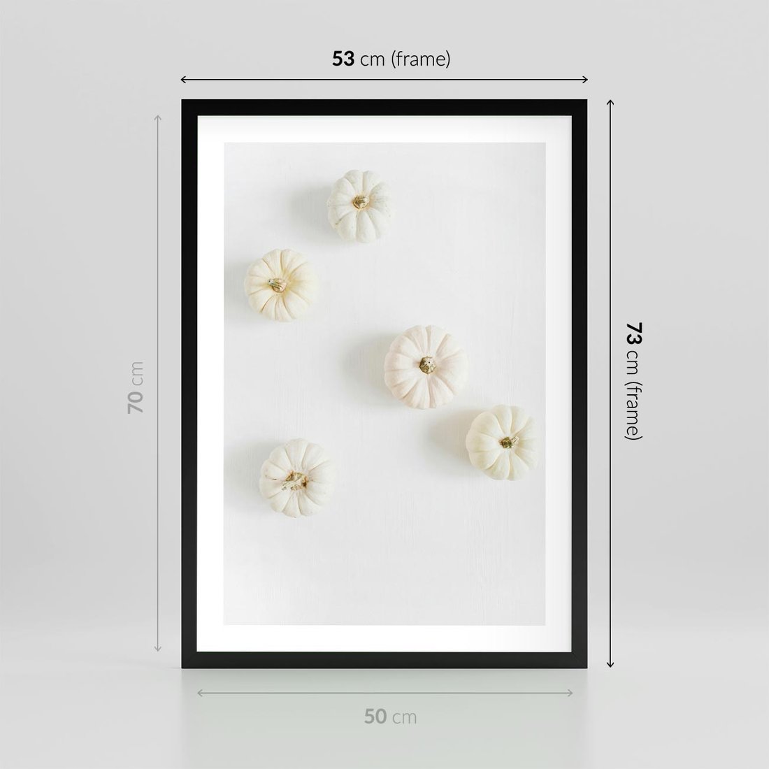 Plakat w ramie 50x70 - Biała Jesień: Dynie na Jasnym Tle - białe dynie, białe tło - rama czarna