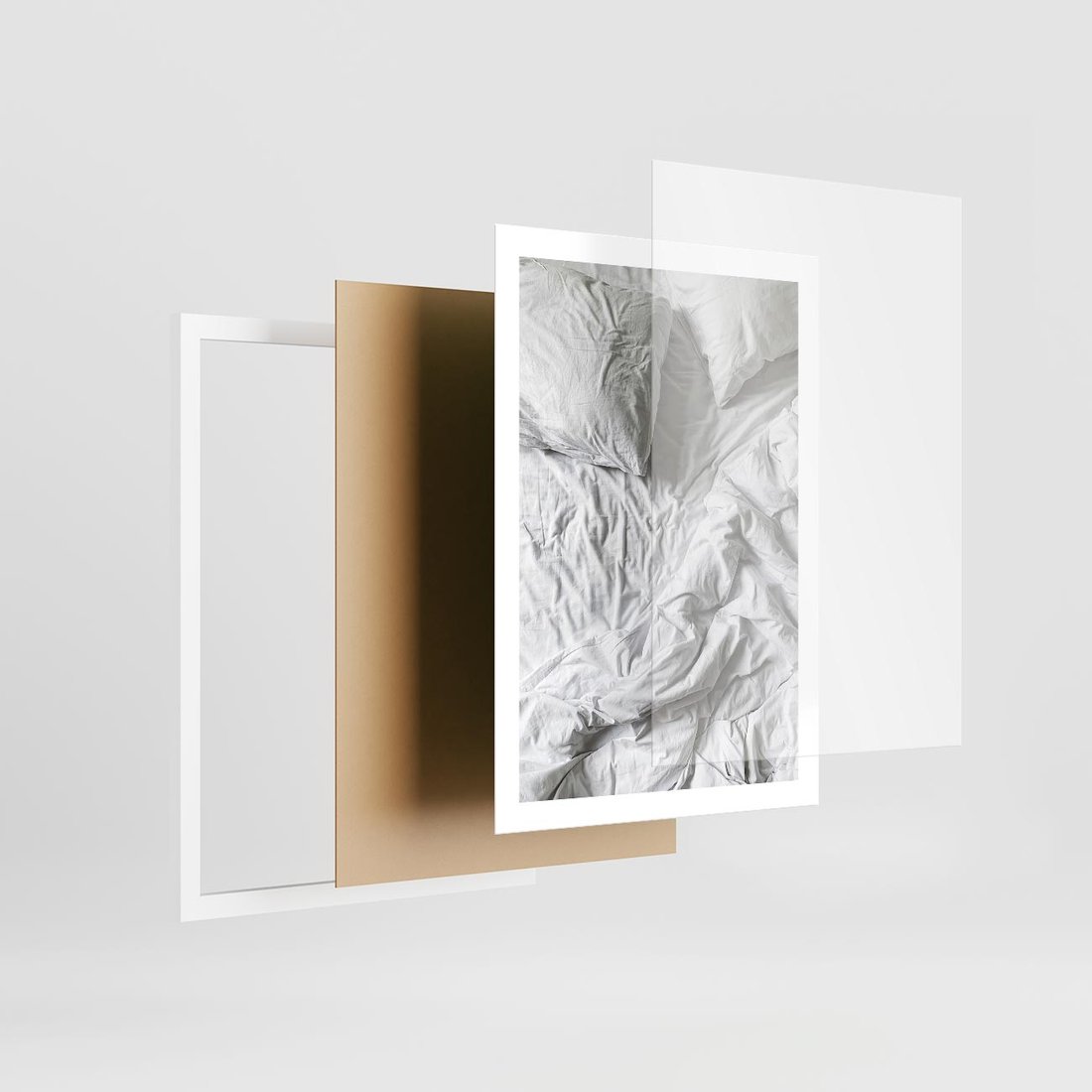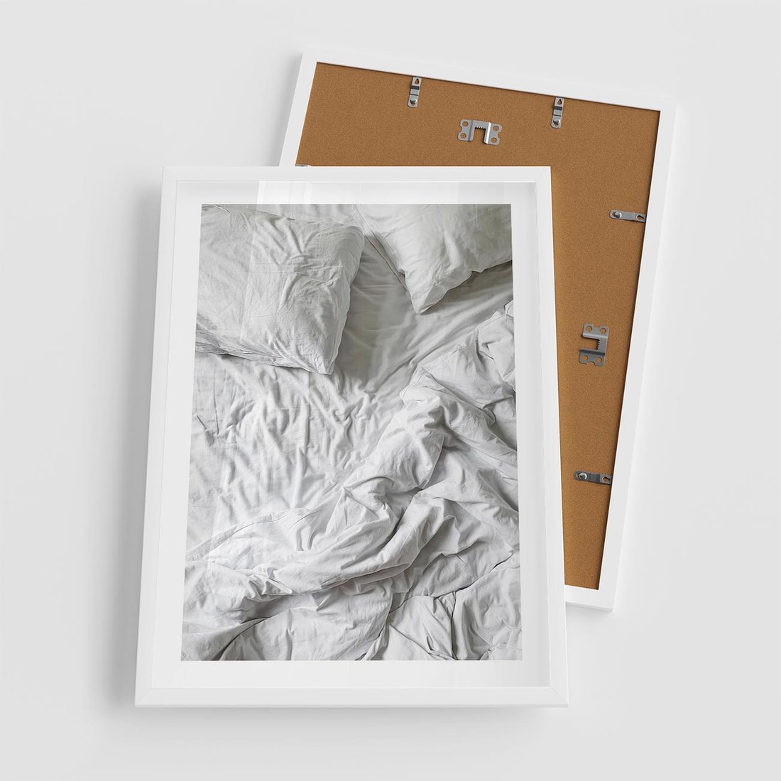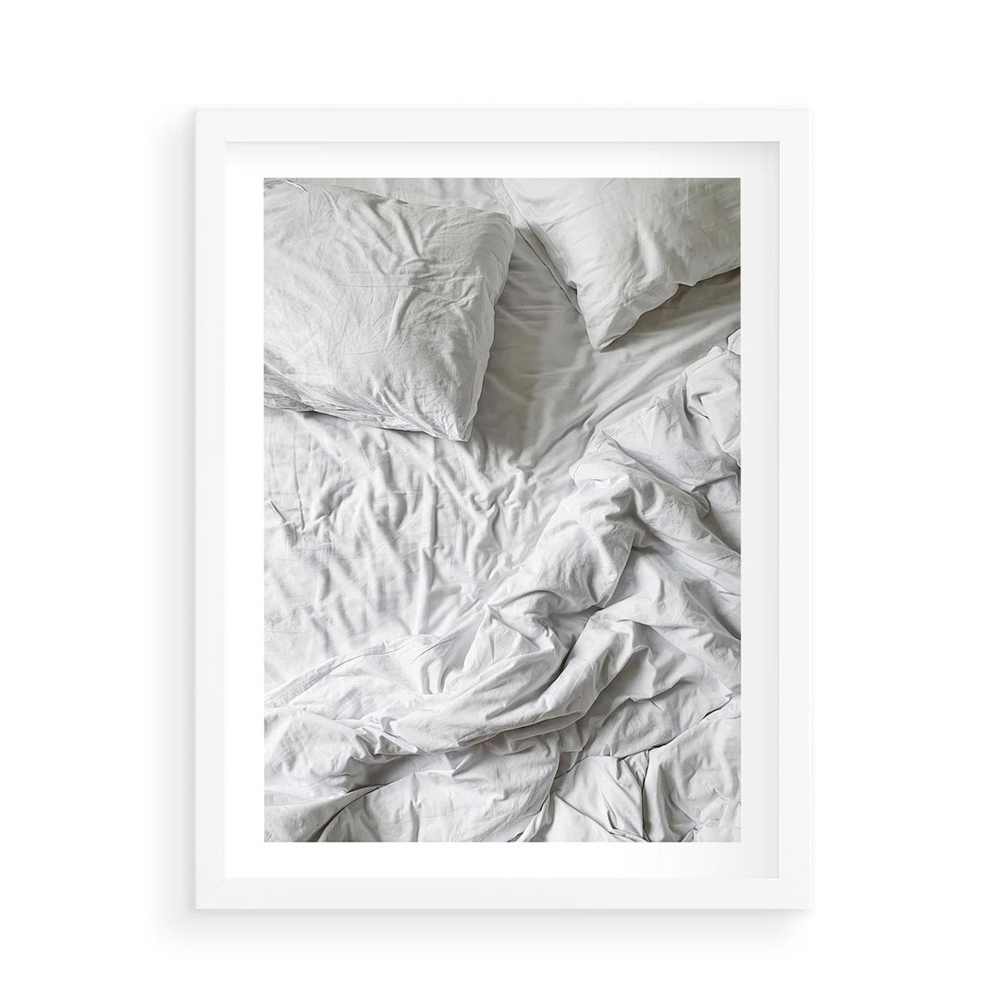 - Plakat w ramie 50x70 - Biała Pościel na Łóżku