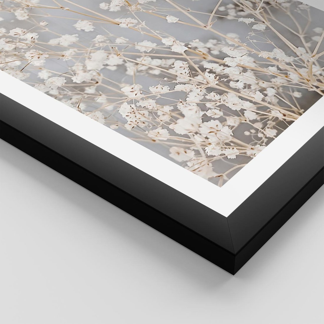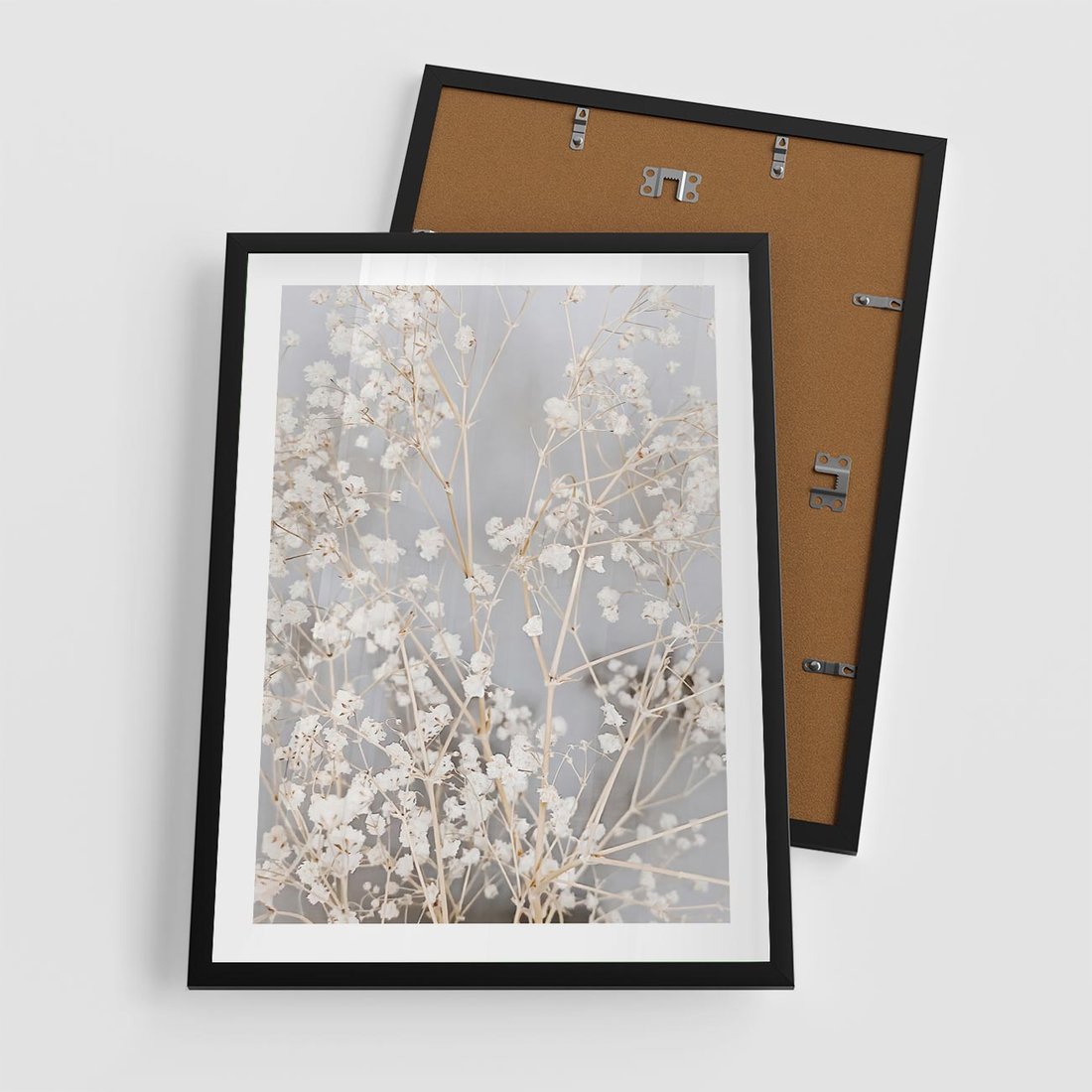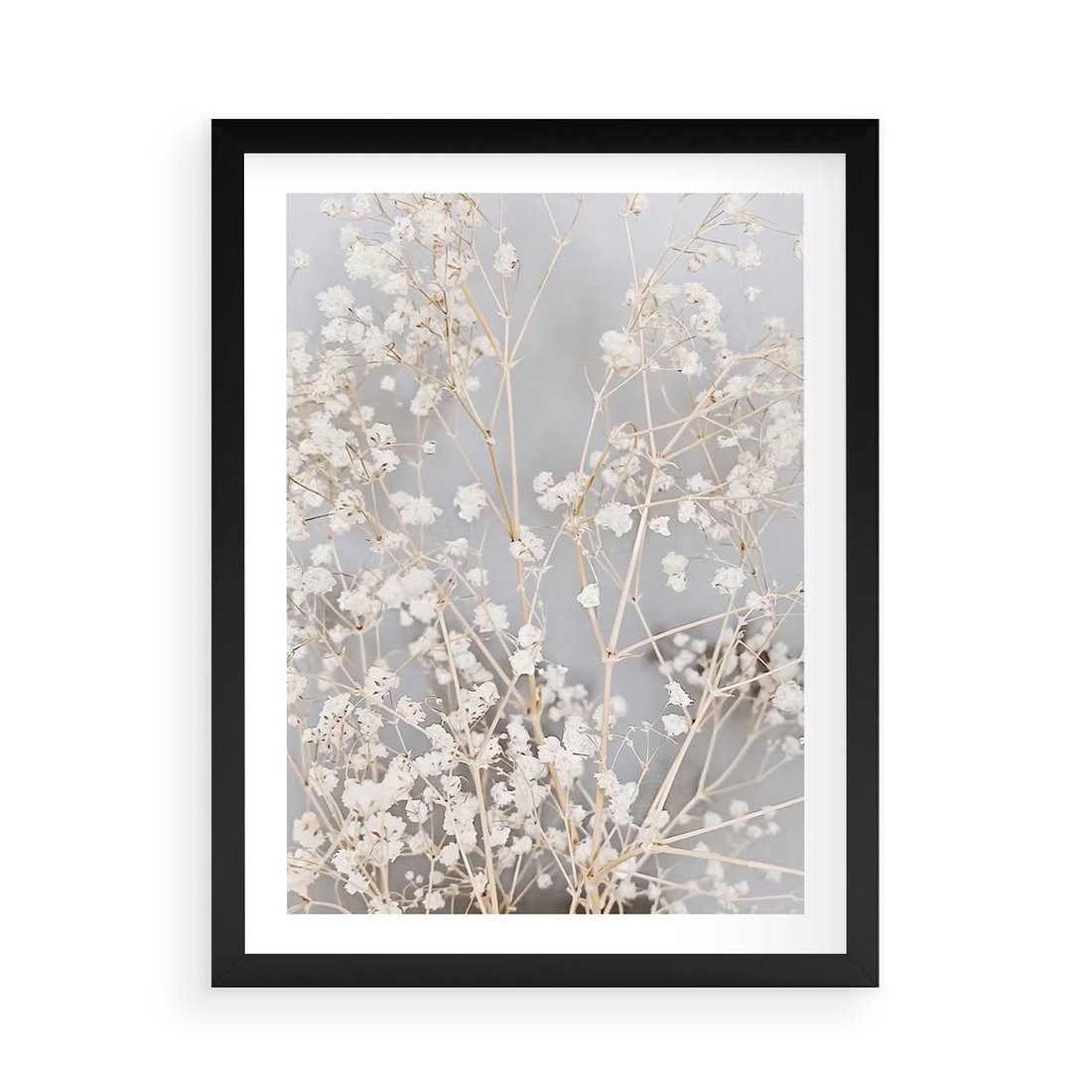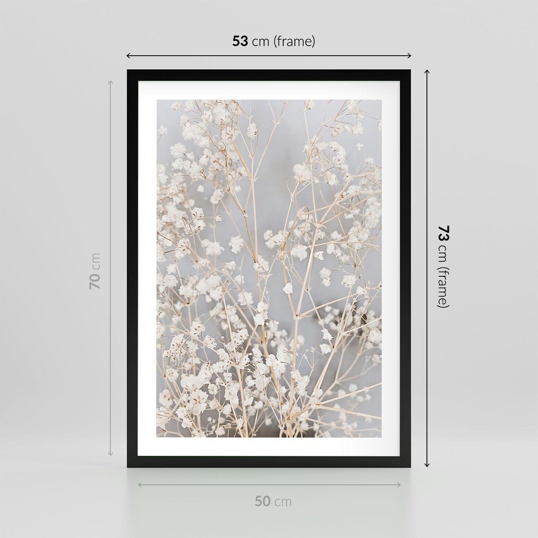 Plakat w ramie 50x70 - Białe Drobne Kwiaty - gipsówka, białe drobne kwiatki - rama czarna