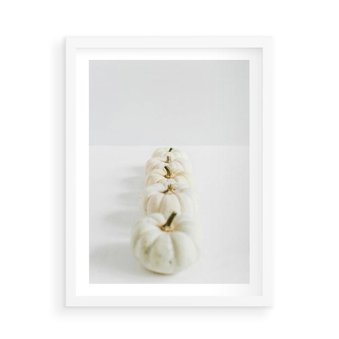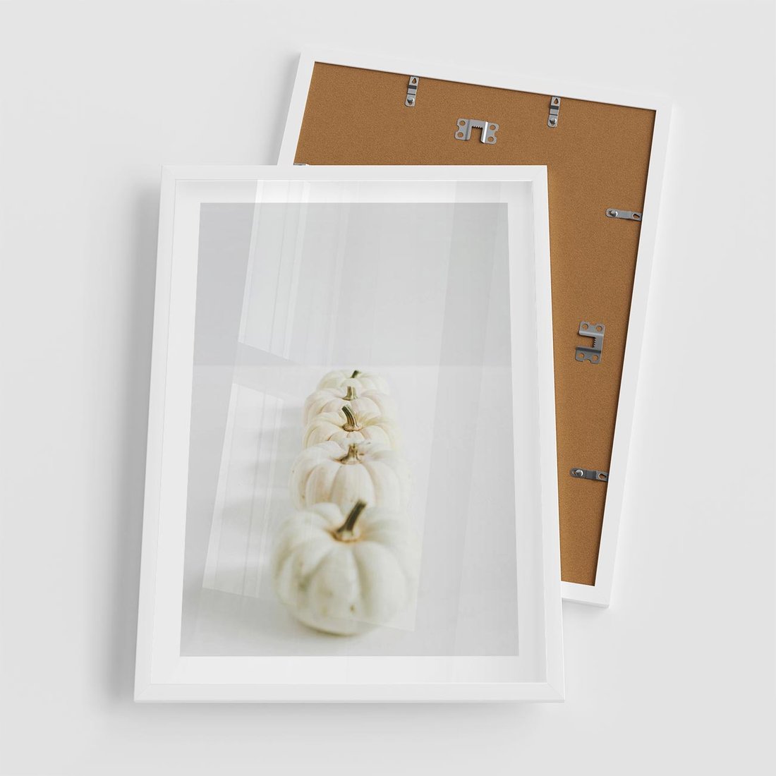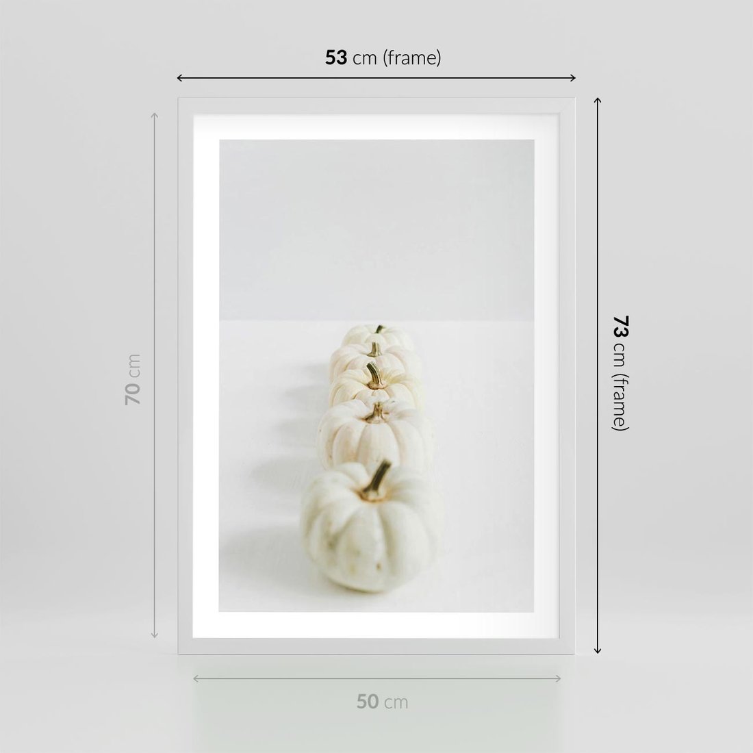 Plakat w ramie 50x70 - Białe Dynie - białe dynie, jesień - rama biała