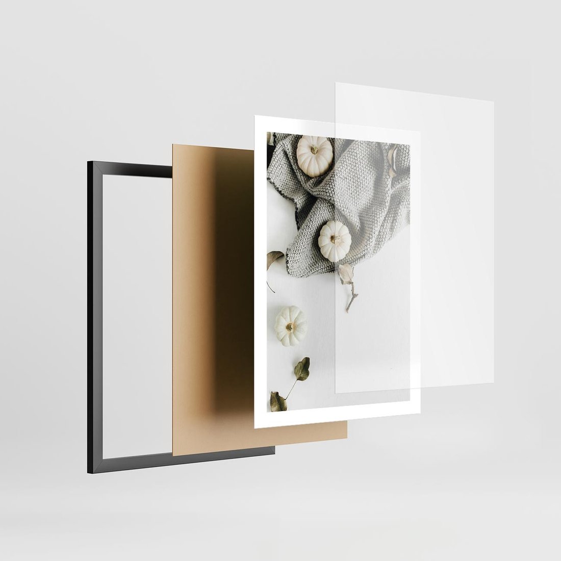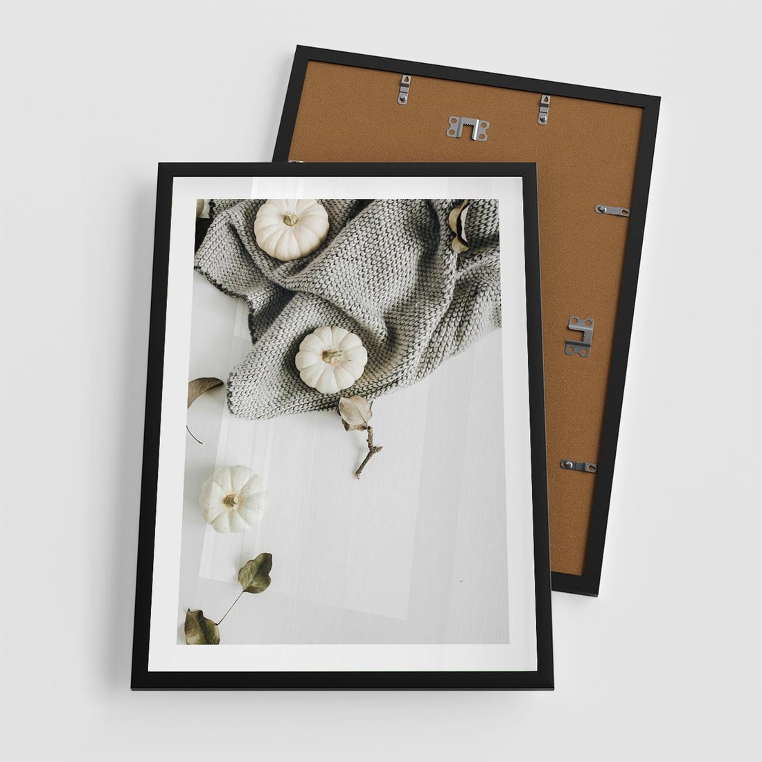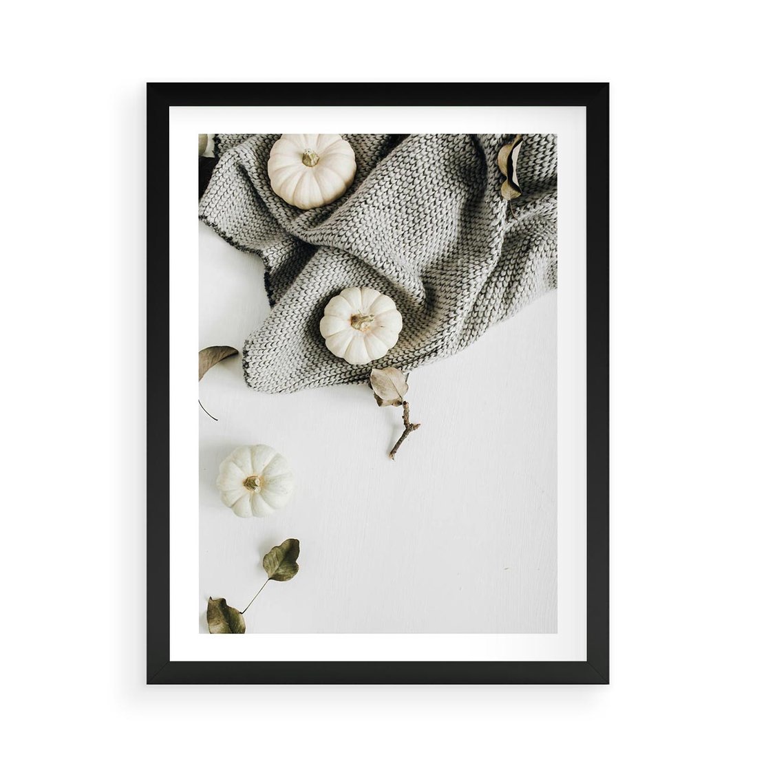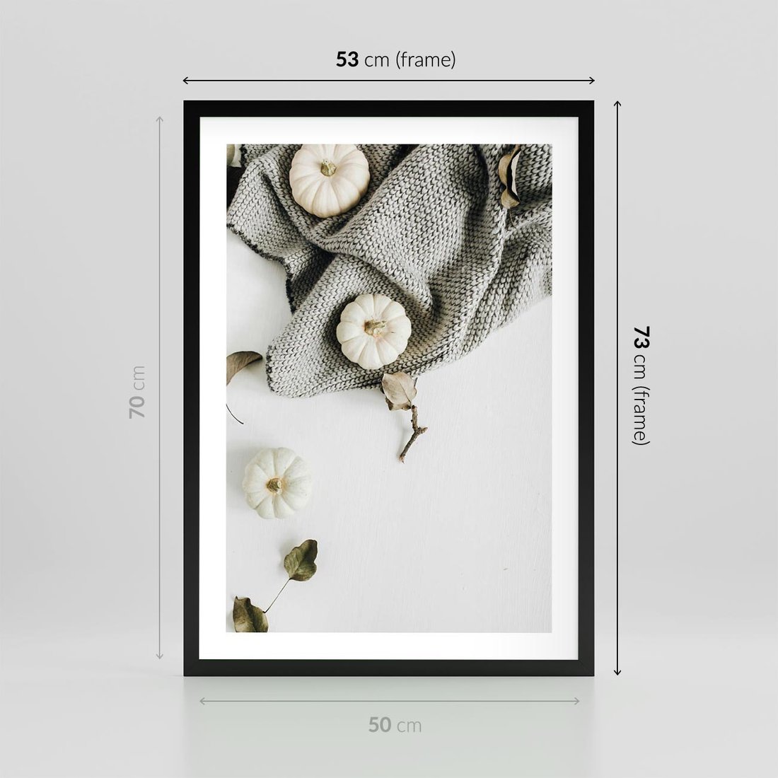 - Plakat w ramie 50x70 - Białe Dynie i Przytulny Koc