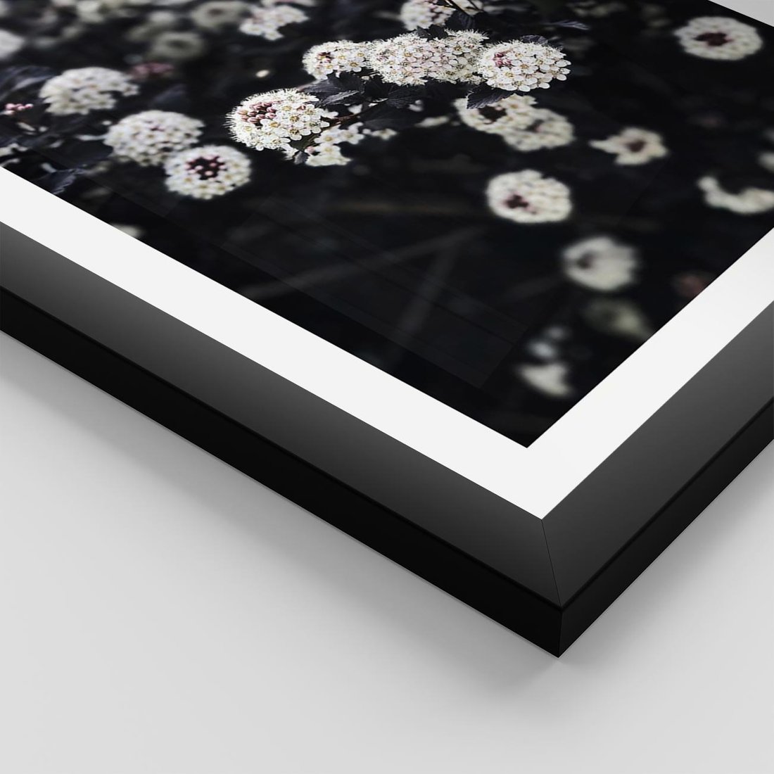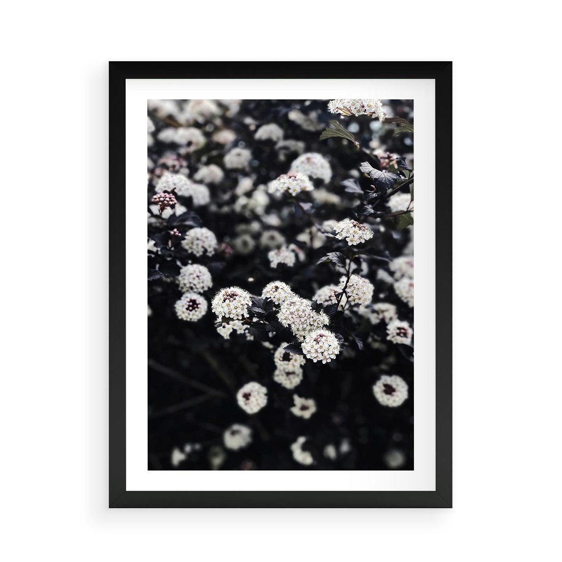 Plakat w ramie 50x70 - Białe Kwiaty na Kwitnącym Krzewie - białe kwiaty, kwitnący krzew - rama czarna