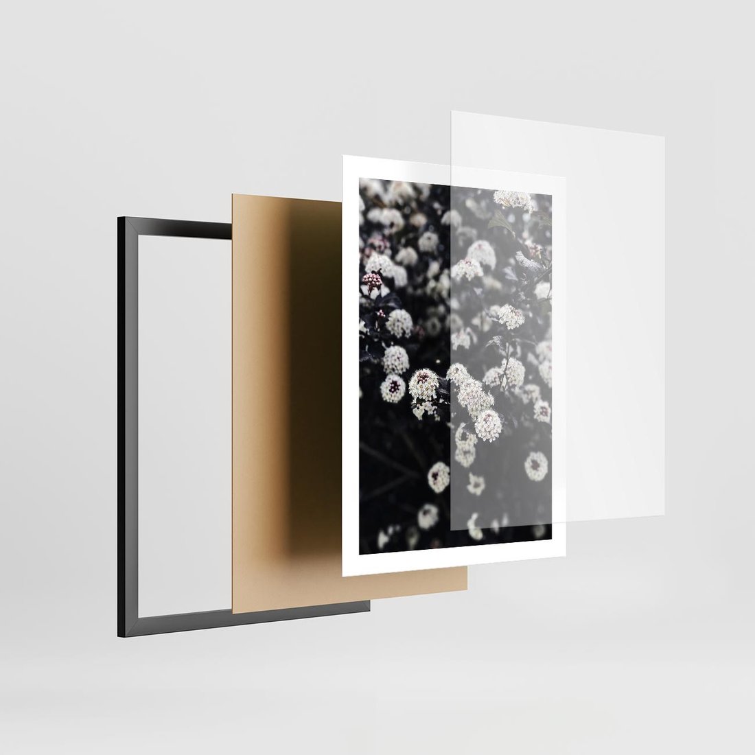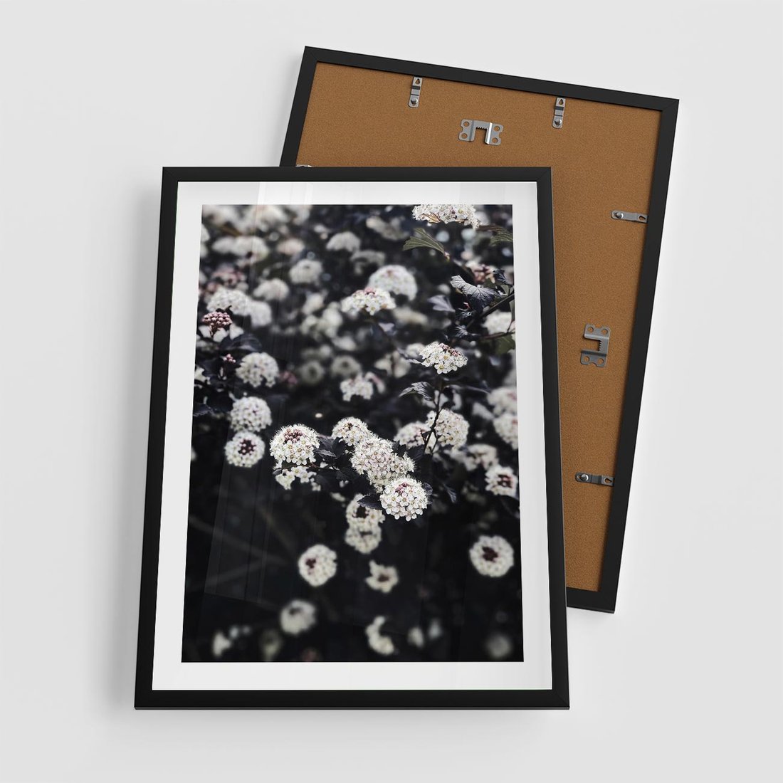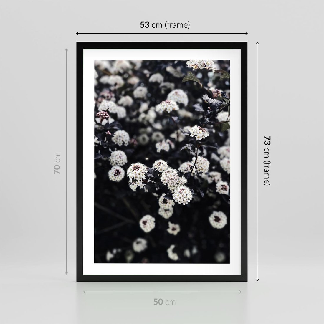 - Plakat w ramie 50x70 - Białe Kwiaty na Kwitnącym Krzewie