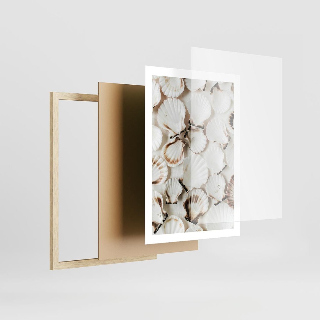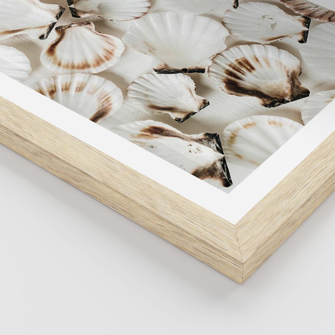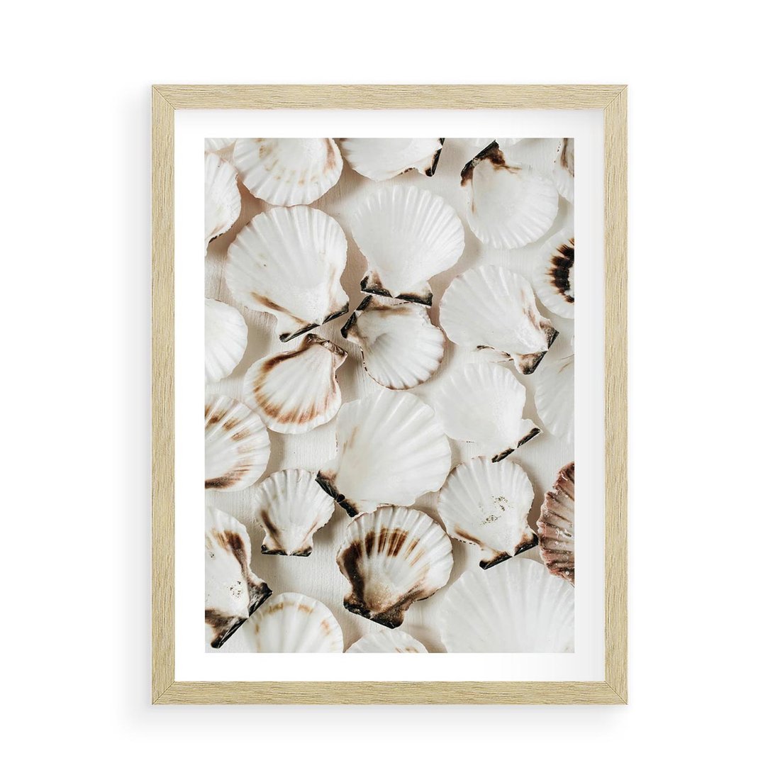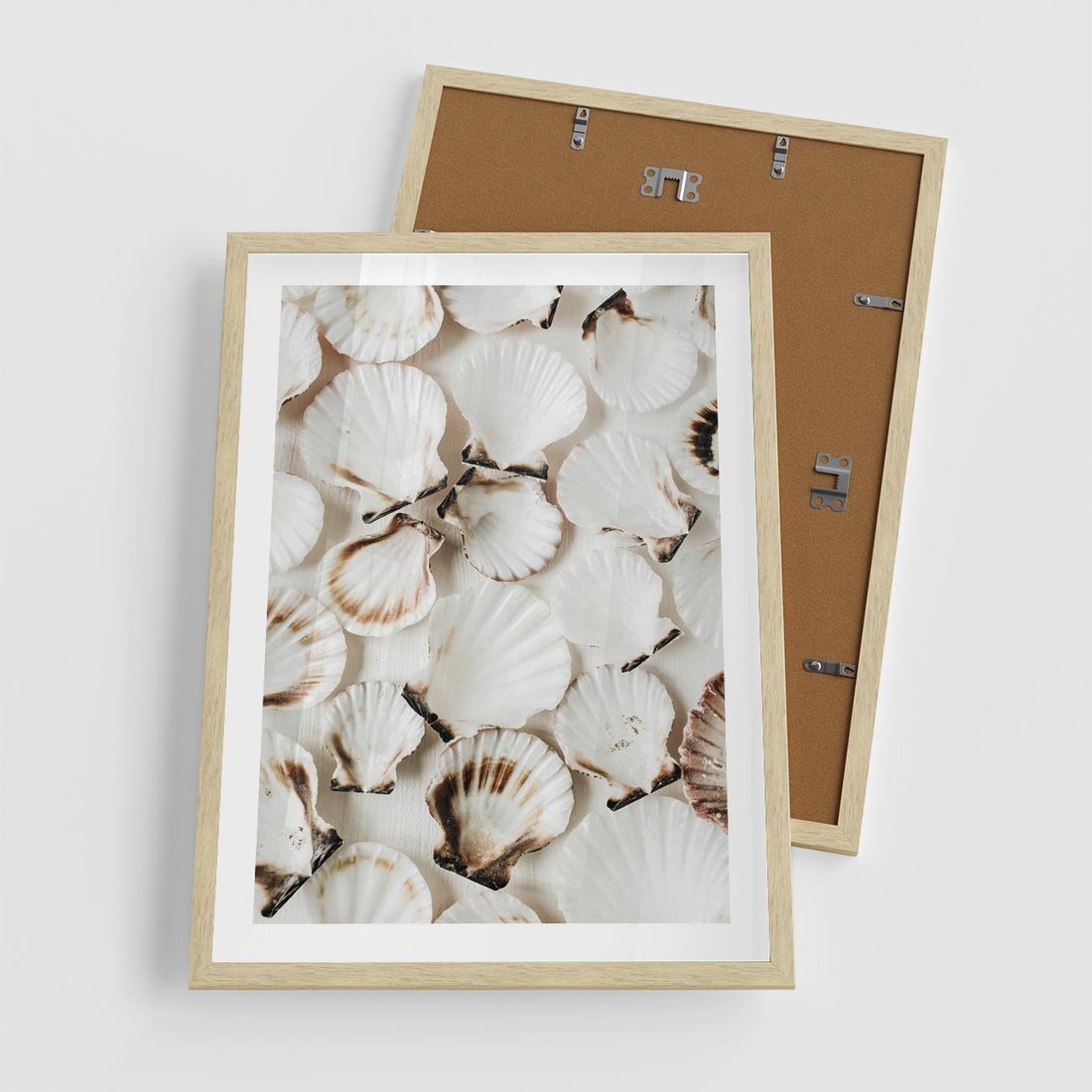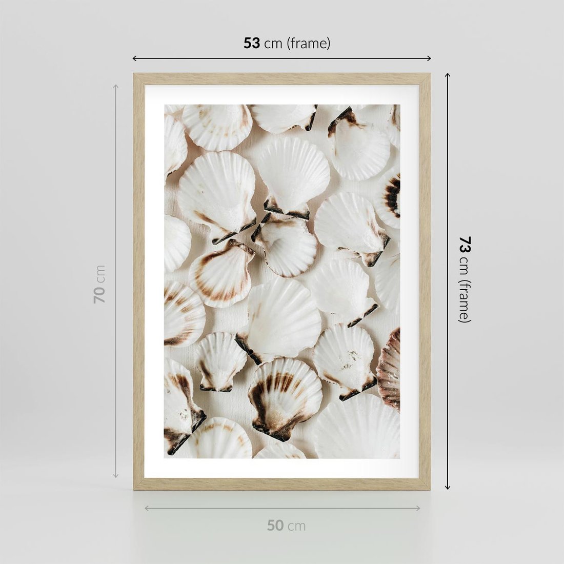 Plakat w ramie 50x70 - Białe Muszle - białe muszle, ujęcie z góry - rama drewno