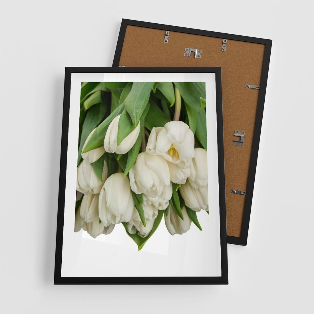 - Plakat w ramie 50x70 - Białe tulipany w pełnym rozkwicie