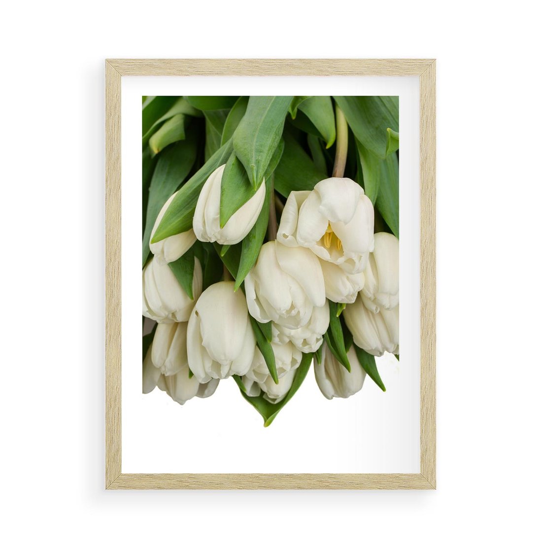 Plakat w ramie 50x70 - Białe tulipany w pełnym rozkwicie - białe, tulipany - rama drewno