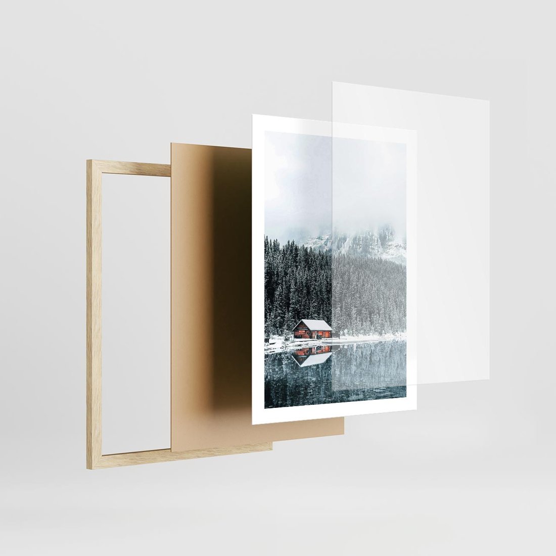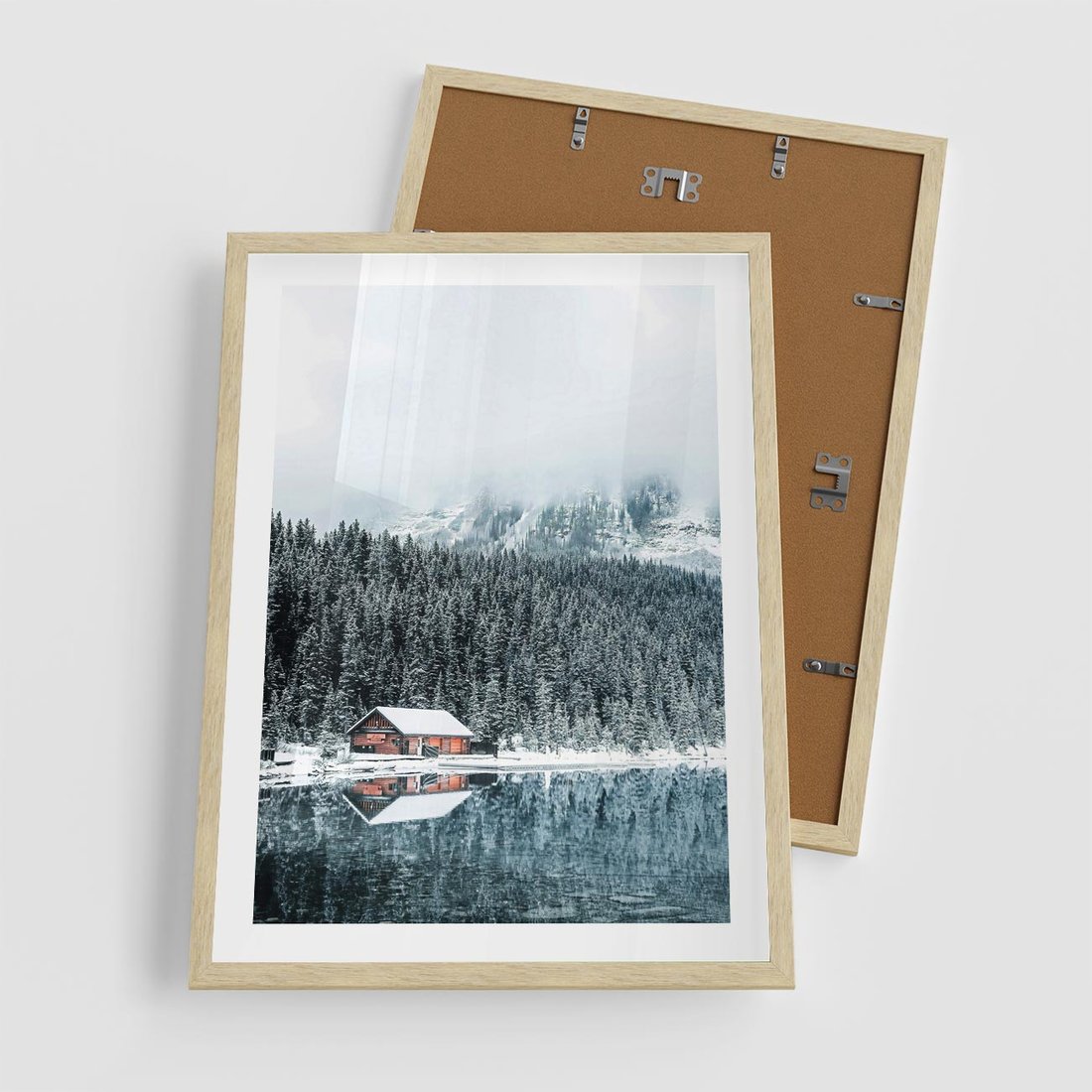 Plakat w ramie 50x70 - Biały Domek - domek w górach, zima - rama drewno