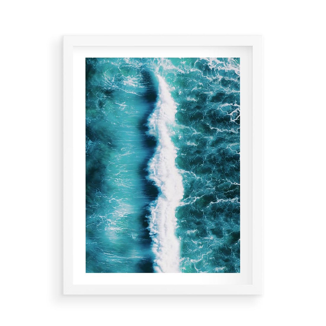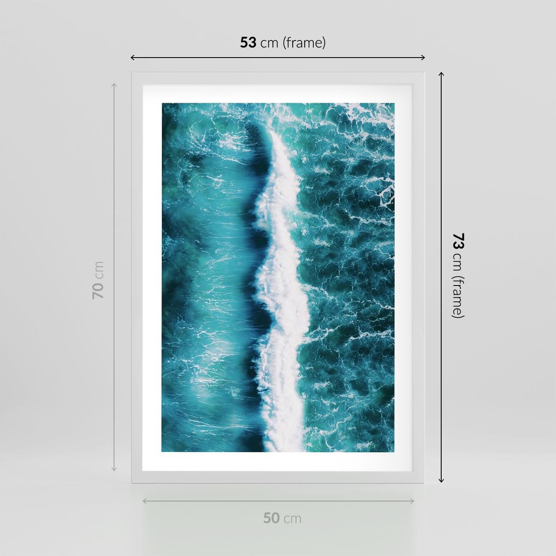 Plakat w ramie 50x70 - Błękitna Siła Oceanu - fale, ocean - rama biała