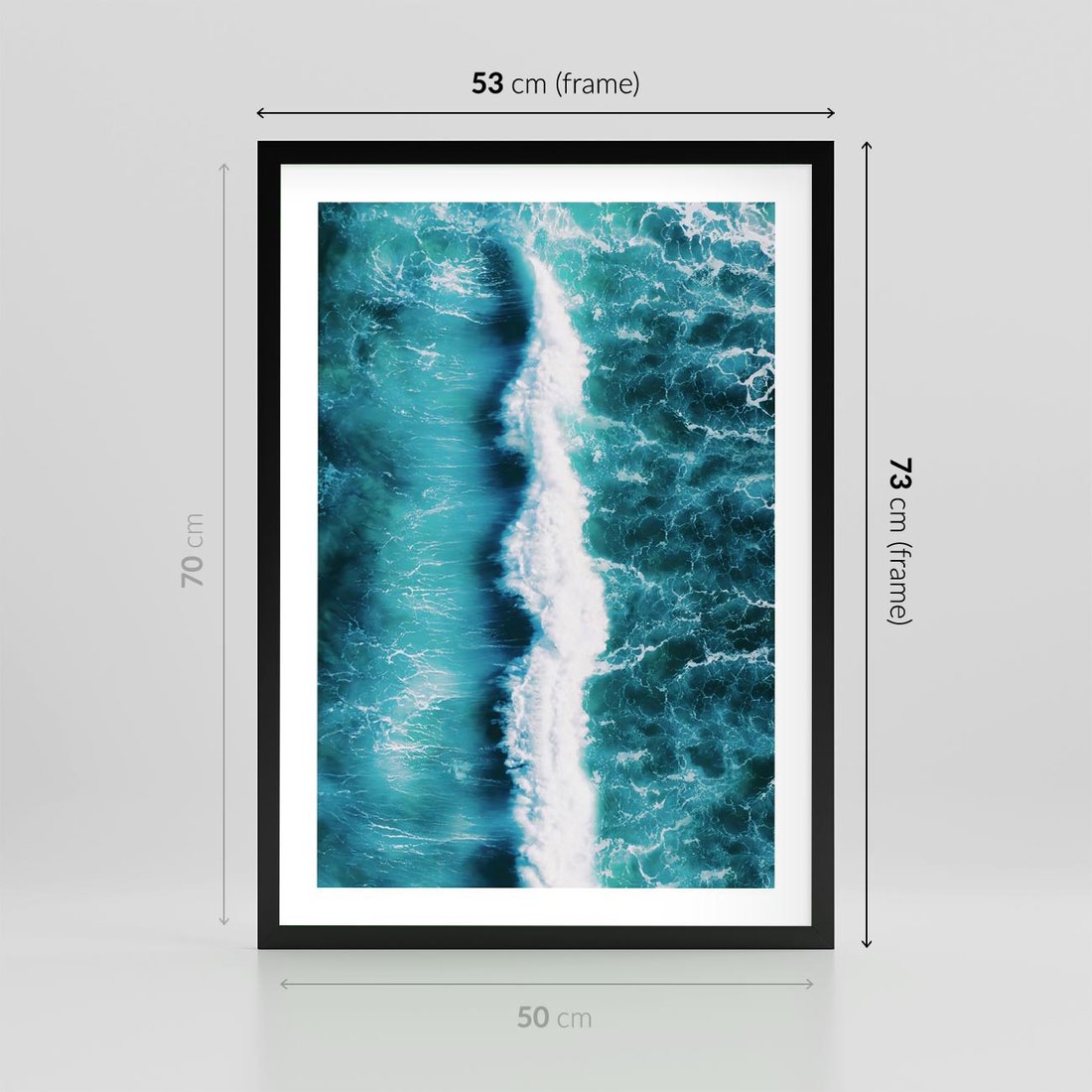 Plakat w ramie 50x70 - Błękitna Siła Oceanu - fale, ocean - rama czarna