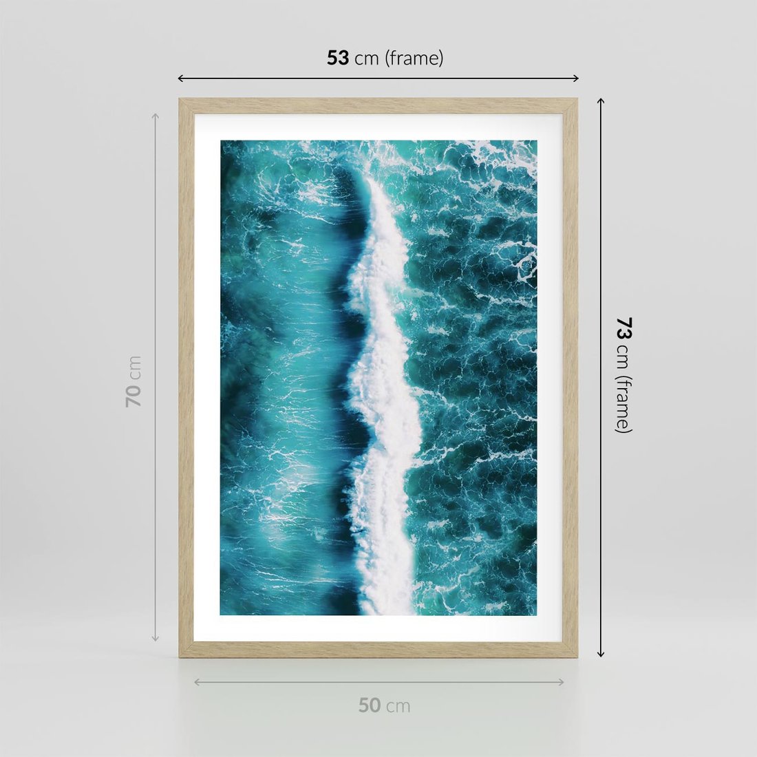 Plakat w ramie 50x70 - Błękitna Siła Oceanu - fale, ocean - rama drewno