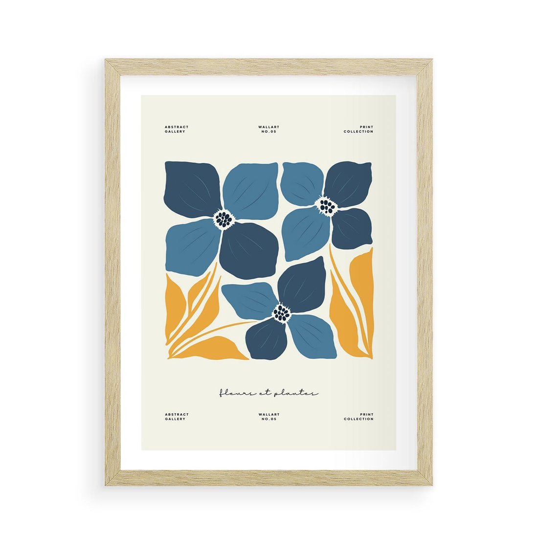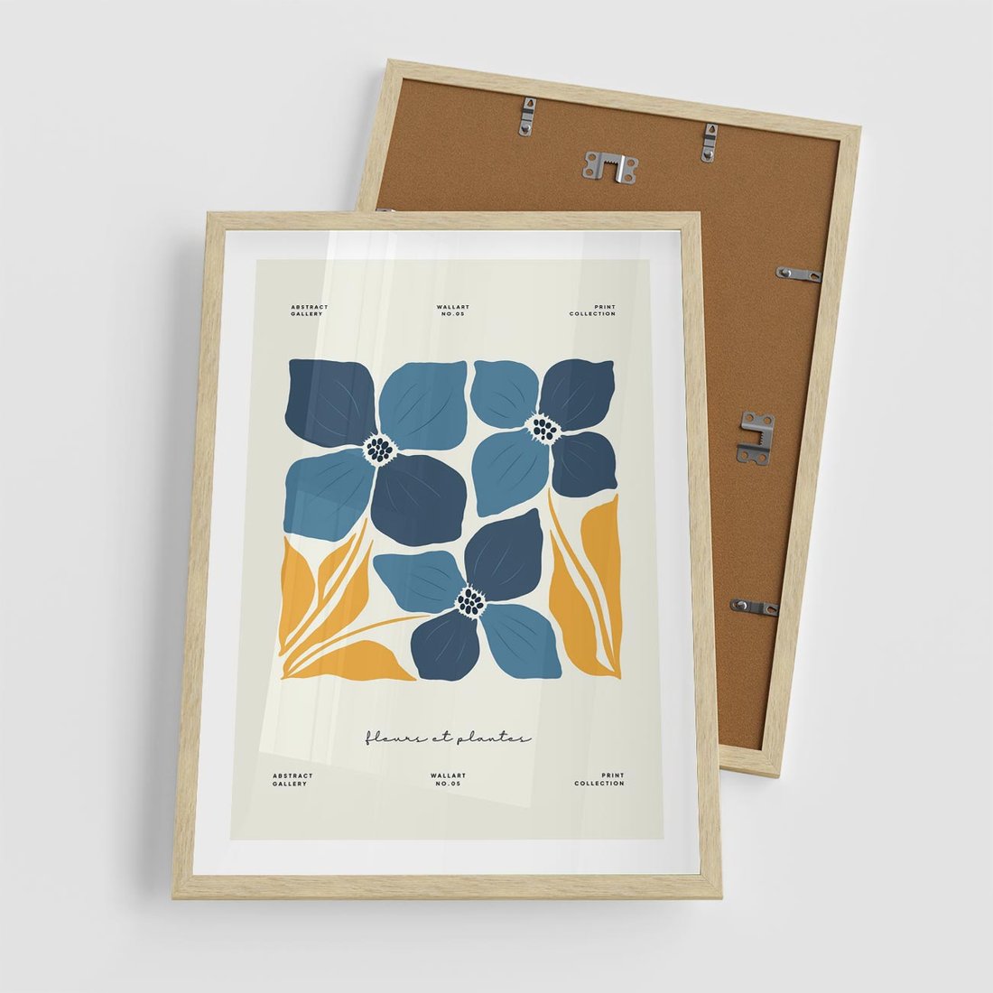Ta nowoczesna sztuka ukazuje niebieskie kwiaty w nowym świetle, z subtelnie wkomponowaną typografią. Kompozycja tworzy spokojny i elegancki nastrój, zapraszając do odkrywania piękna i spokoju natury.