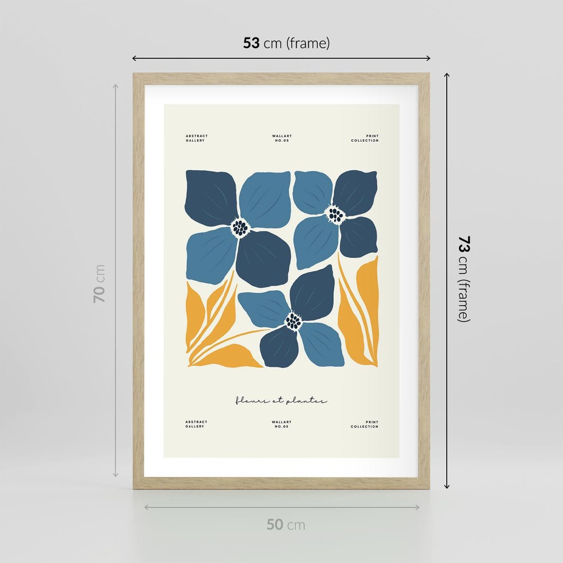 Plakat w ramie 50x70 - Błękitne Nowości - niebieskie kwiaty, nowoczesna sztuka - rama drewno