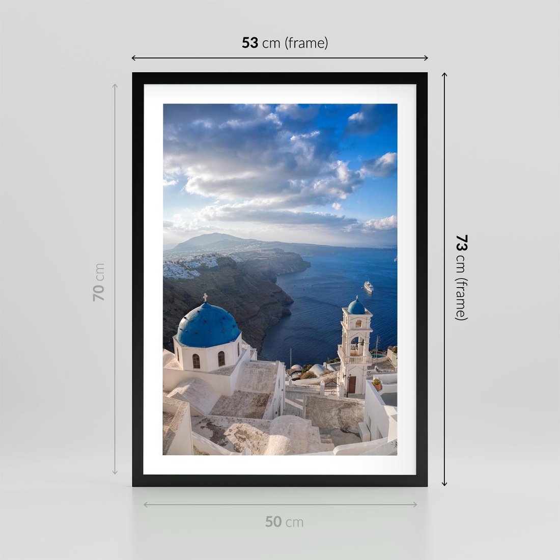 Plakat w ramie 50x70 - Błękitne Przezycia - Santorini, morze - rama czarna