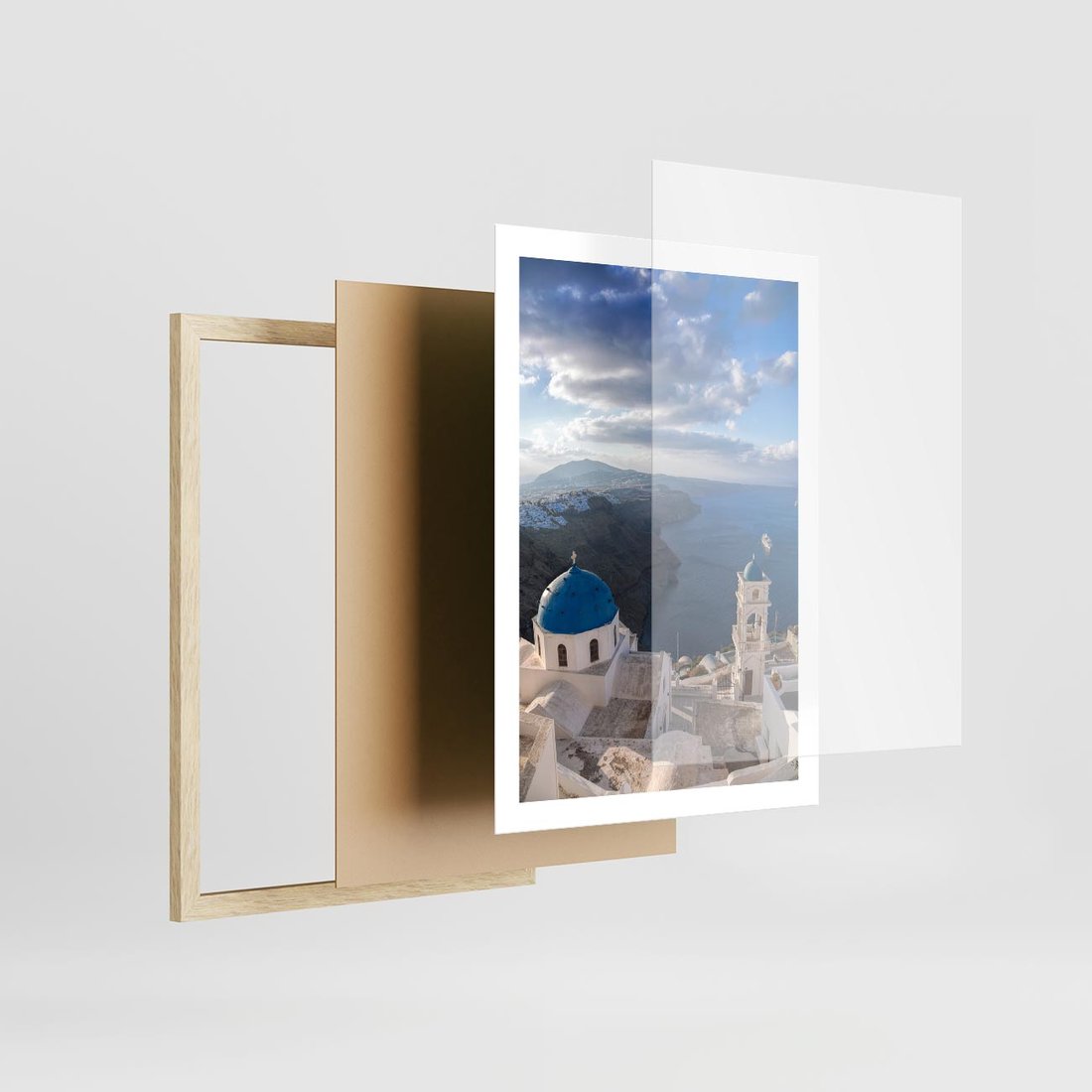 Plakat w ramie 50x70 - Błękitne Przezycia - Santorini, morze - rama drewno