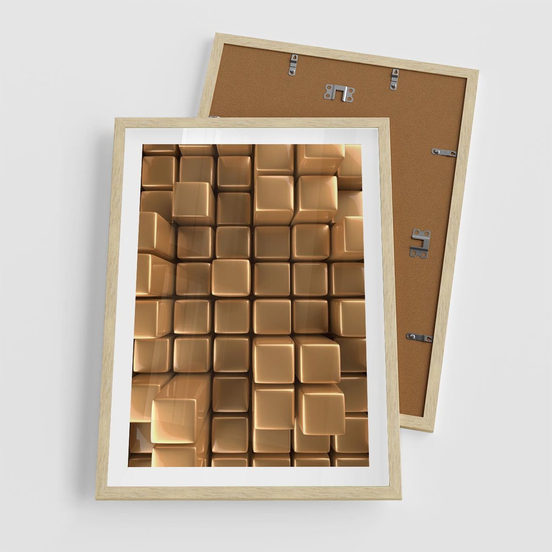 Plakat w ramie 50x70 - Błyszcząca Elegancja - złoto, 3d - rama drewno