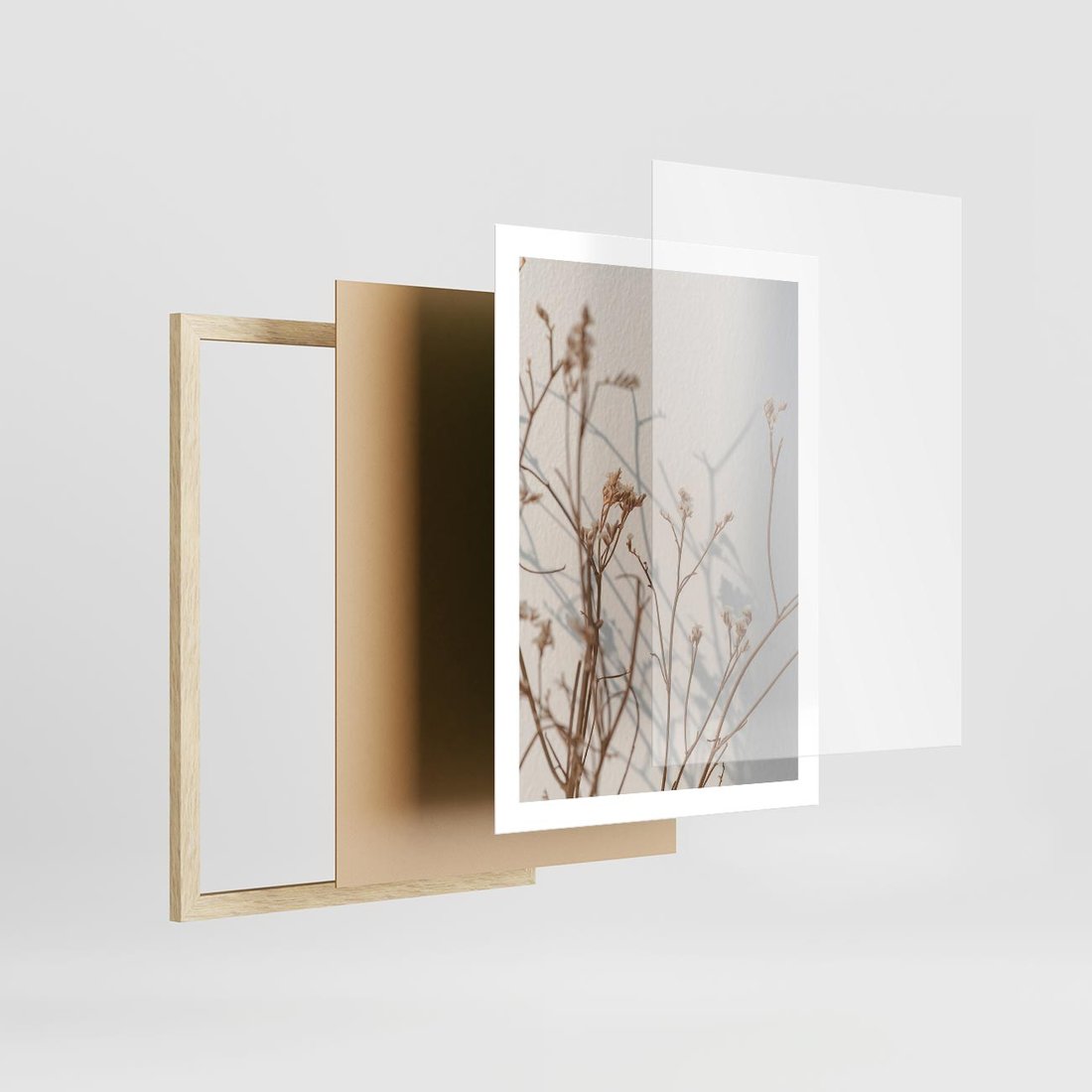 Plakat w ramie 50x70 - Boho gałązki suche - gałązki, suche - rama drewno