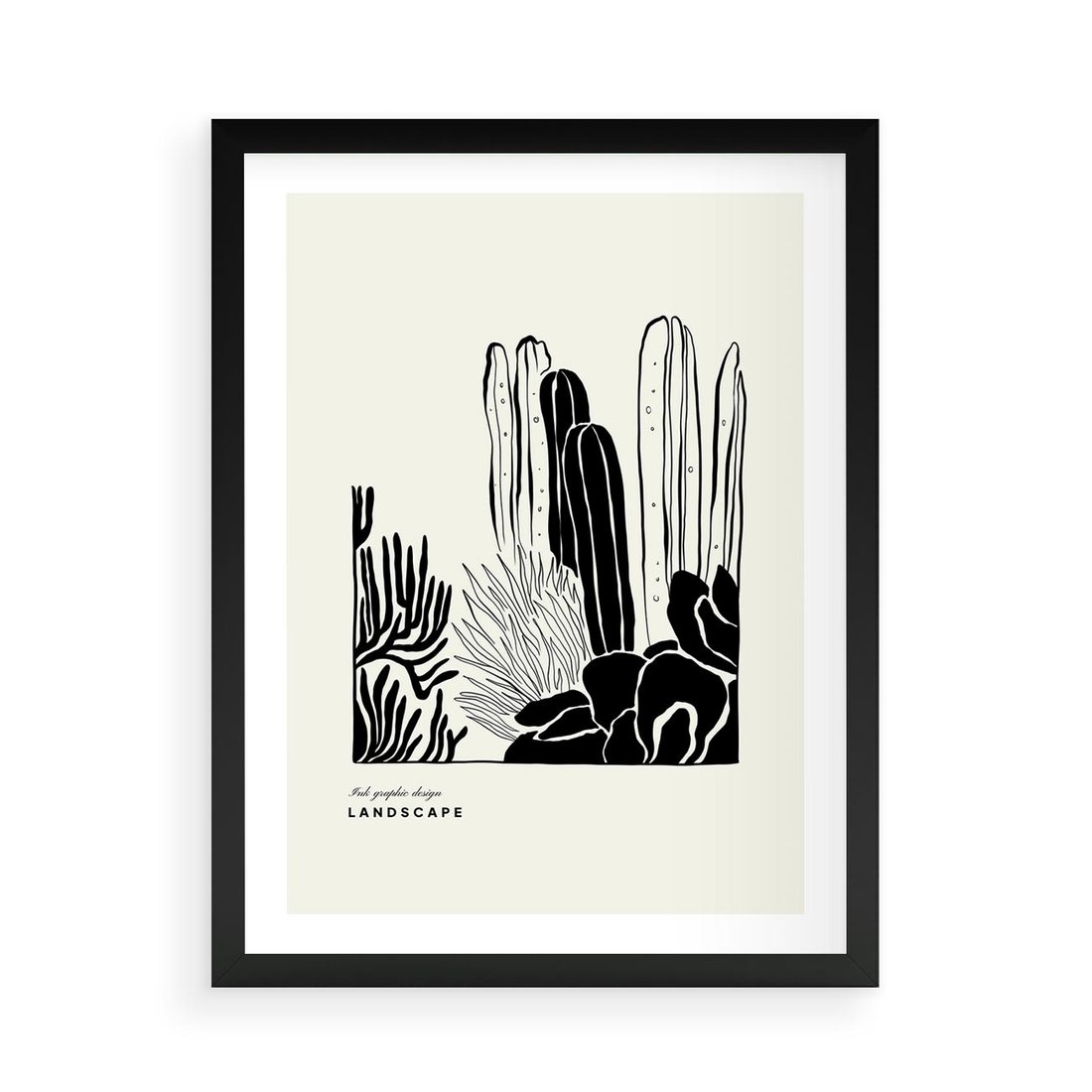 Plakat w ramie 50x70 - Boho Oaza - kaktusy, rośliny - rama czarna