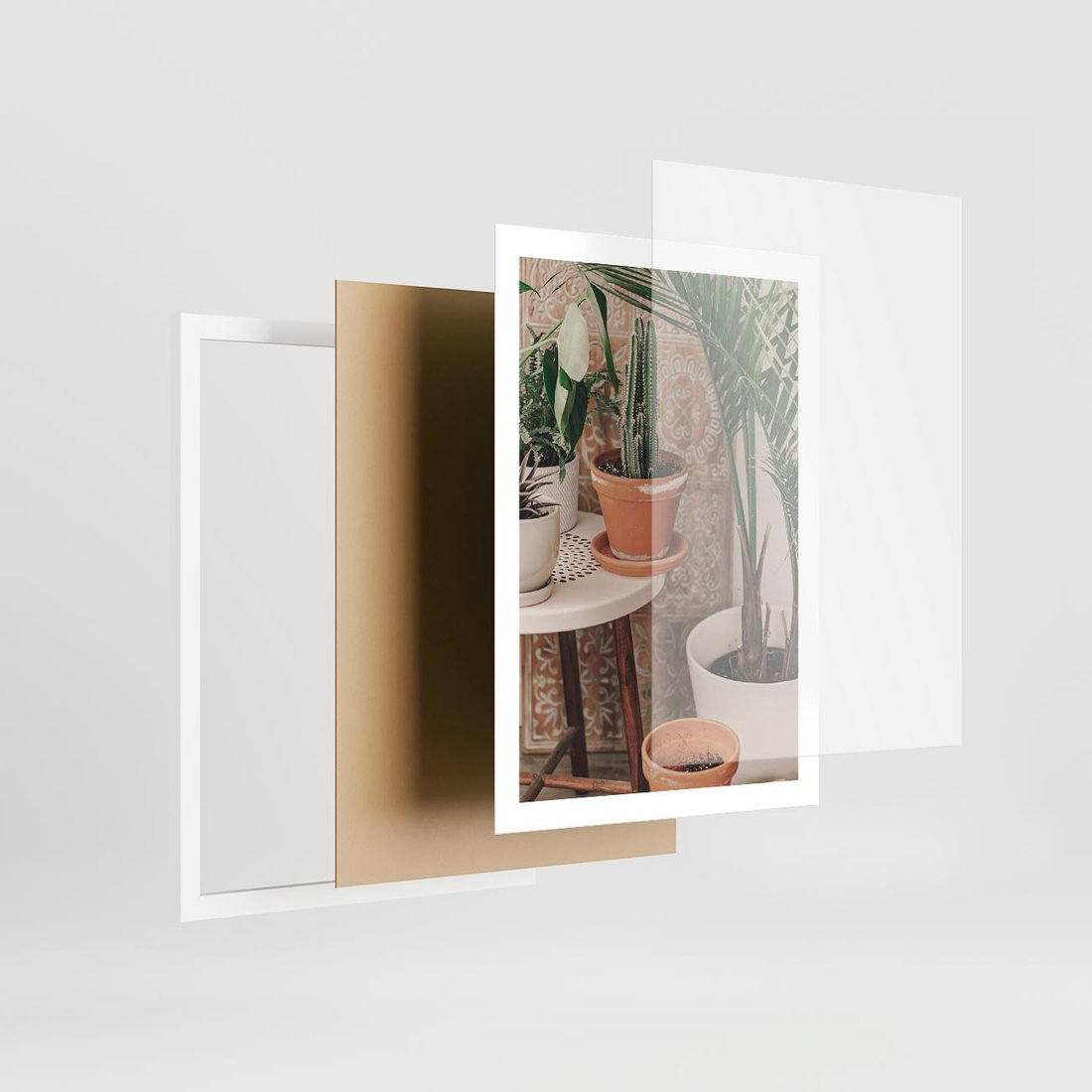- Plakat w ramie 50x70 - Boho Oaza: Kaktusy w Doniczkach