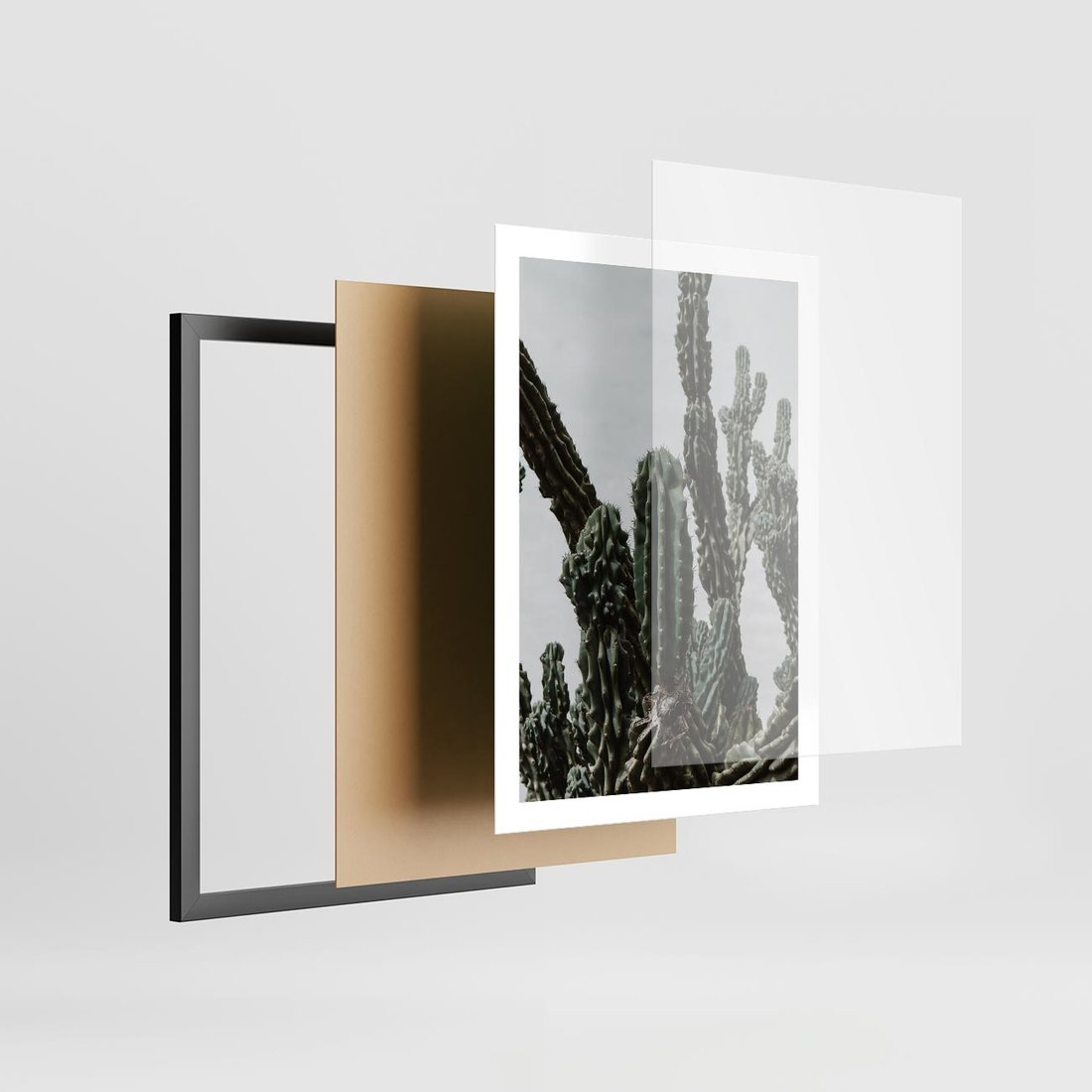 Plakat w ramie 50x70 - Boho oaza wśród kaktusów - kaktusy, pustynia - rama czarna