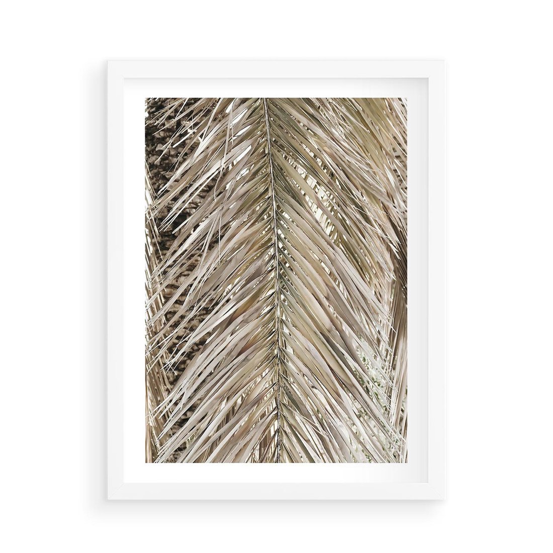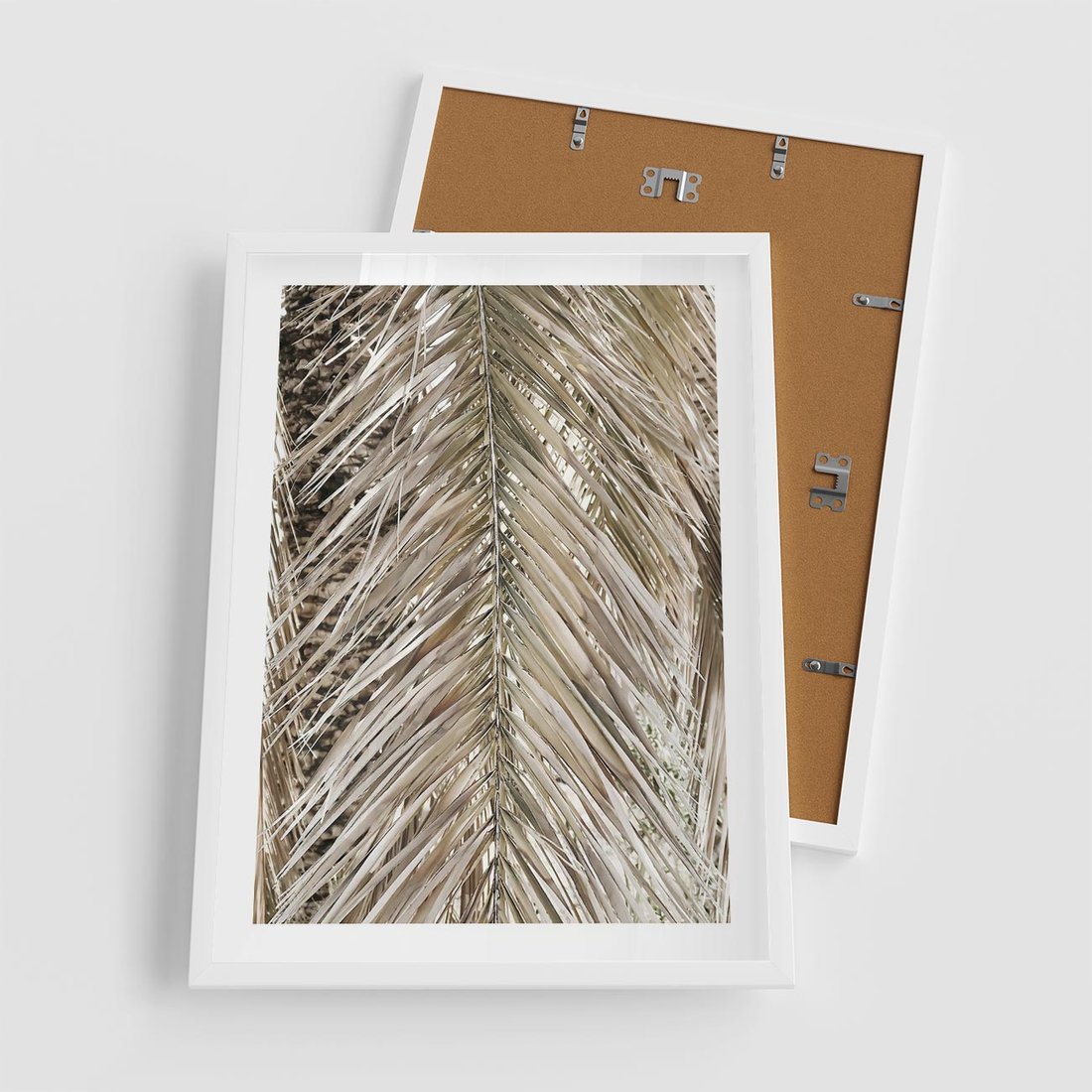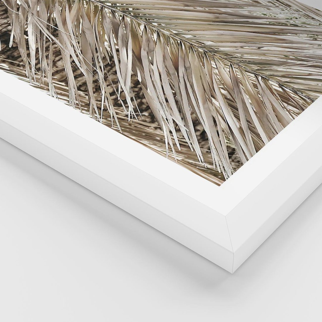 Plakat w ramie 50x70 - Boho Urok Palmy: Zbliżenie Natury - sucha palma, zbliżenie - rama biała