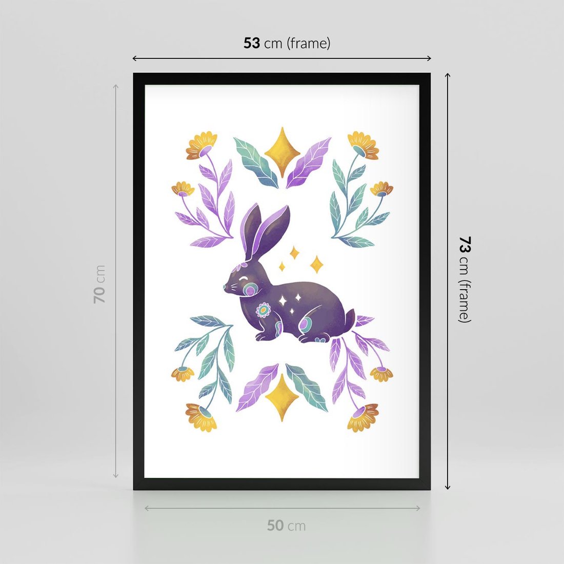 Plakat w ramie 50x70 - Boho Wiatr - boho plakat, królik - rama czarna