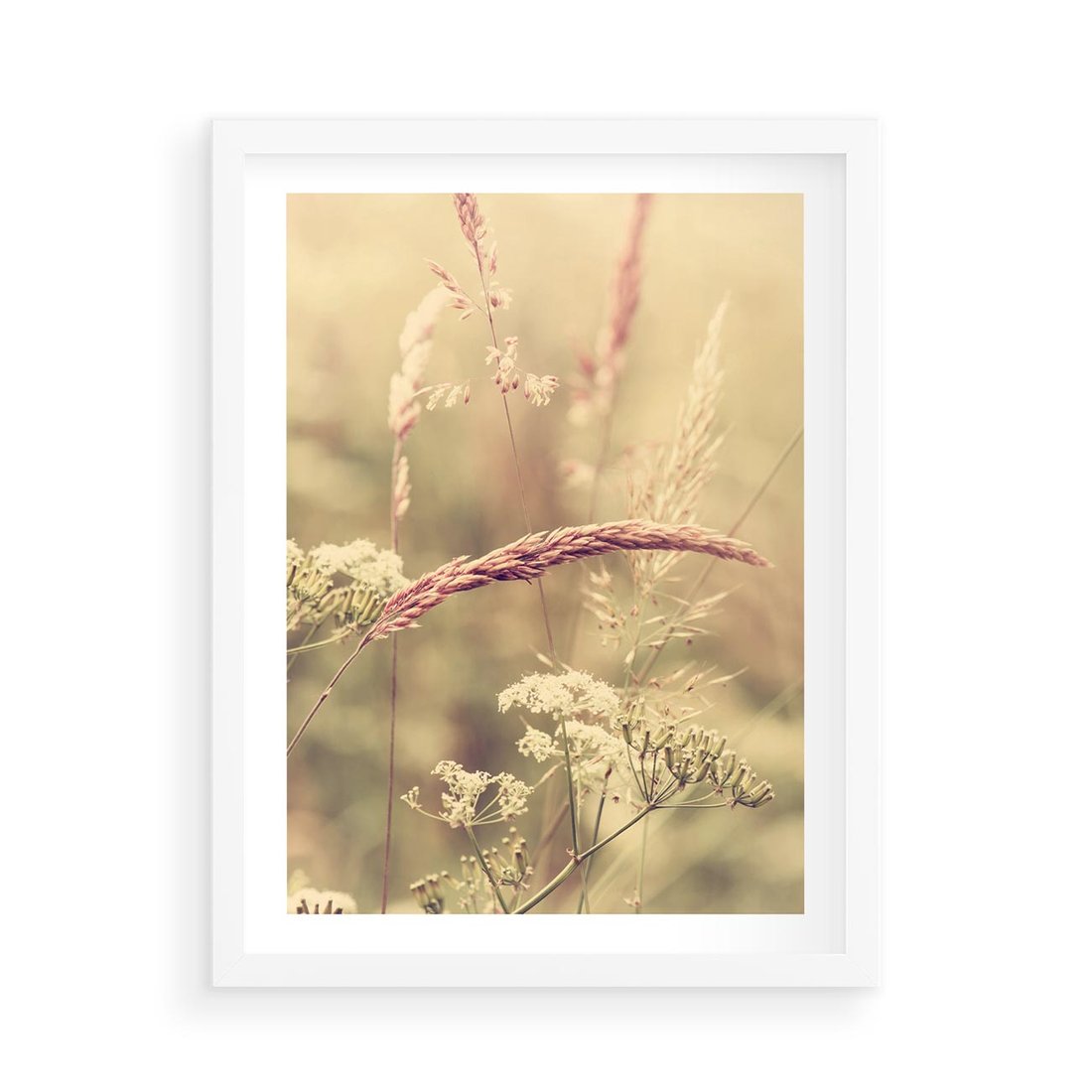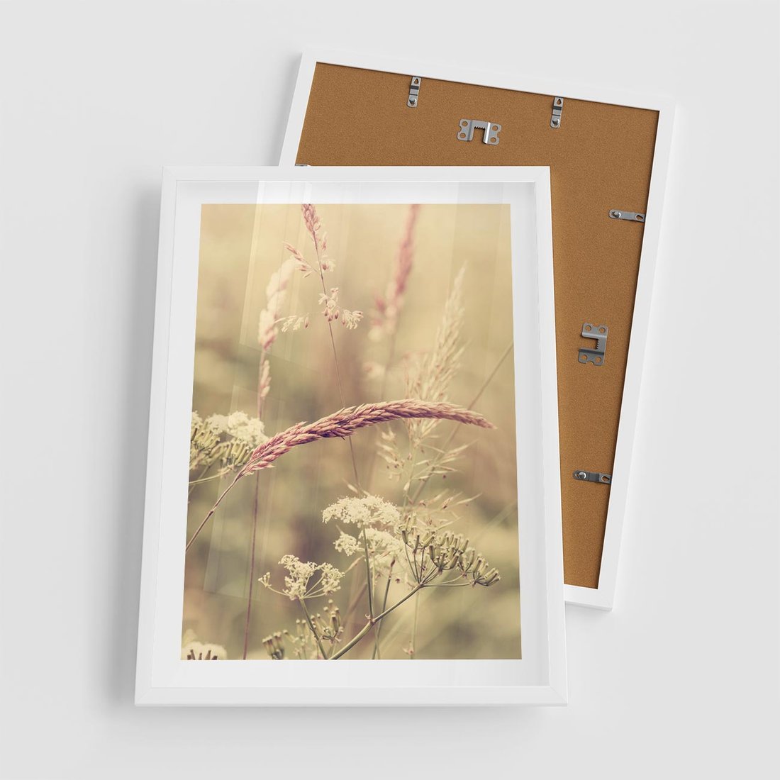 Plakat w ramie 50x70 - Boho Wizja - suszone, trawy - rama biała