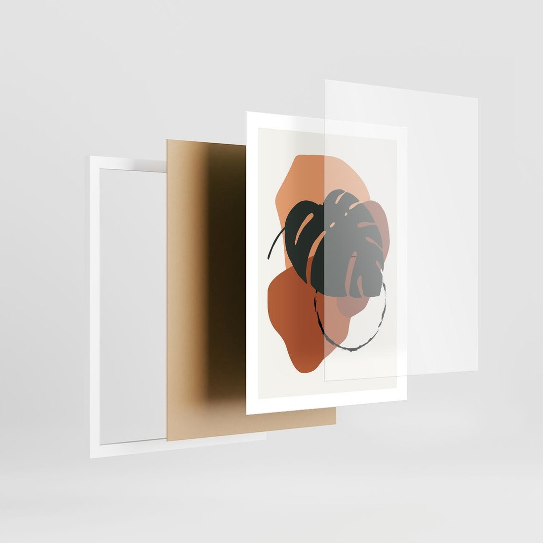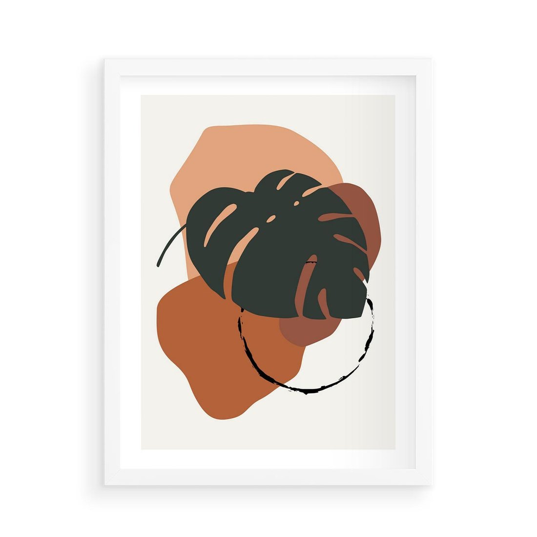 Plakat w ramie 50x70 - Brązowa Ekspresja - liść monstery, boho obraz - rama biała