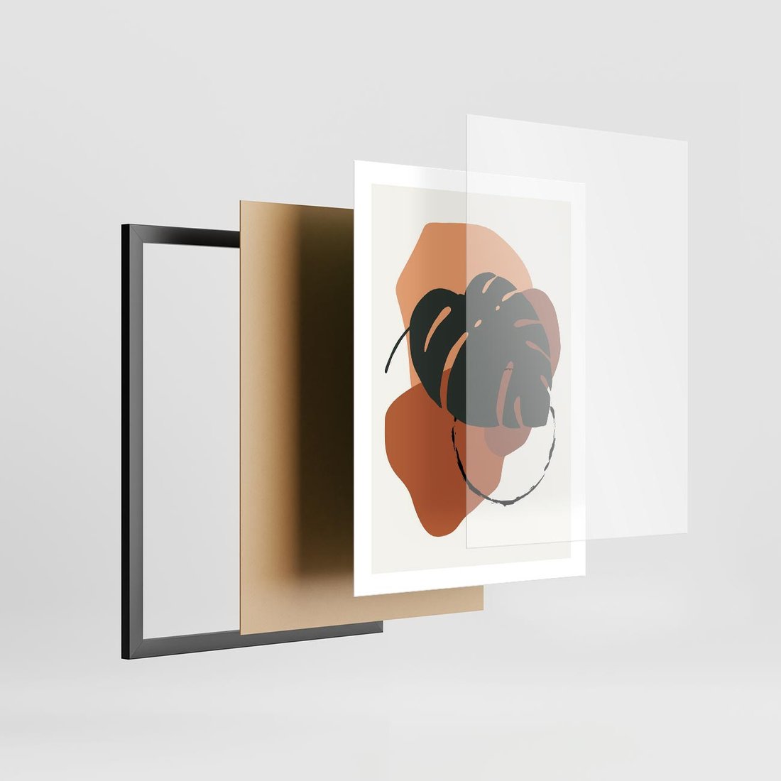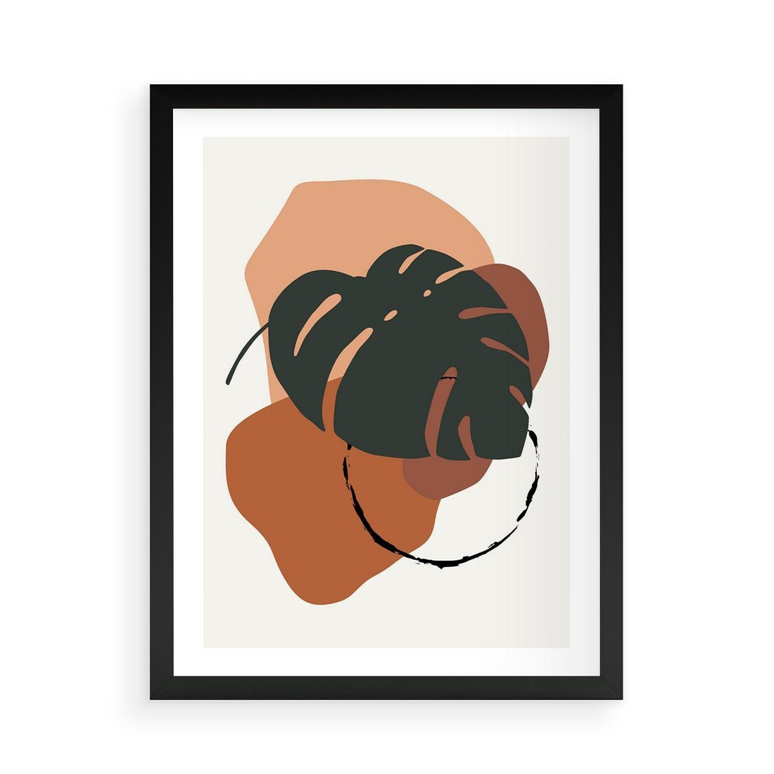 Plakat w ramie 50x70 - Brązowa Ekspresja - liść monstery, boho obraz - rama czarna