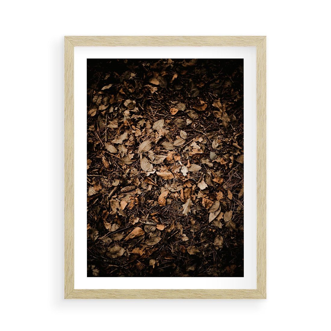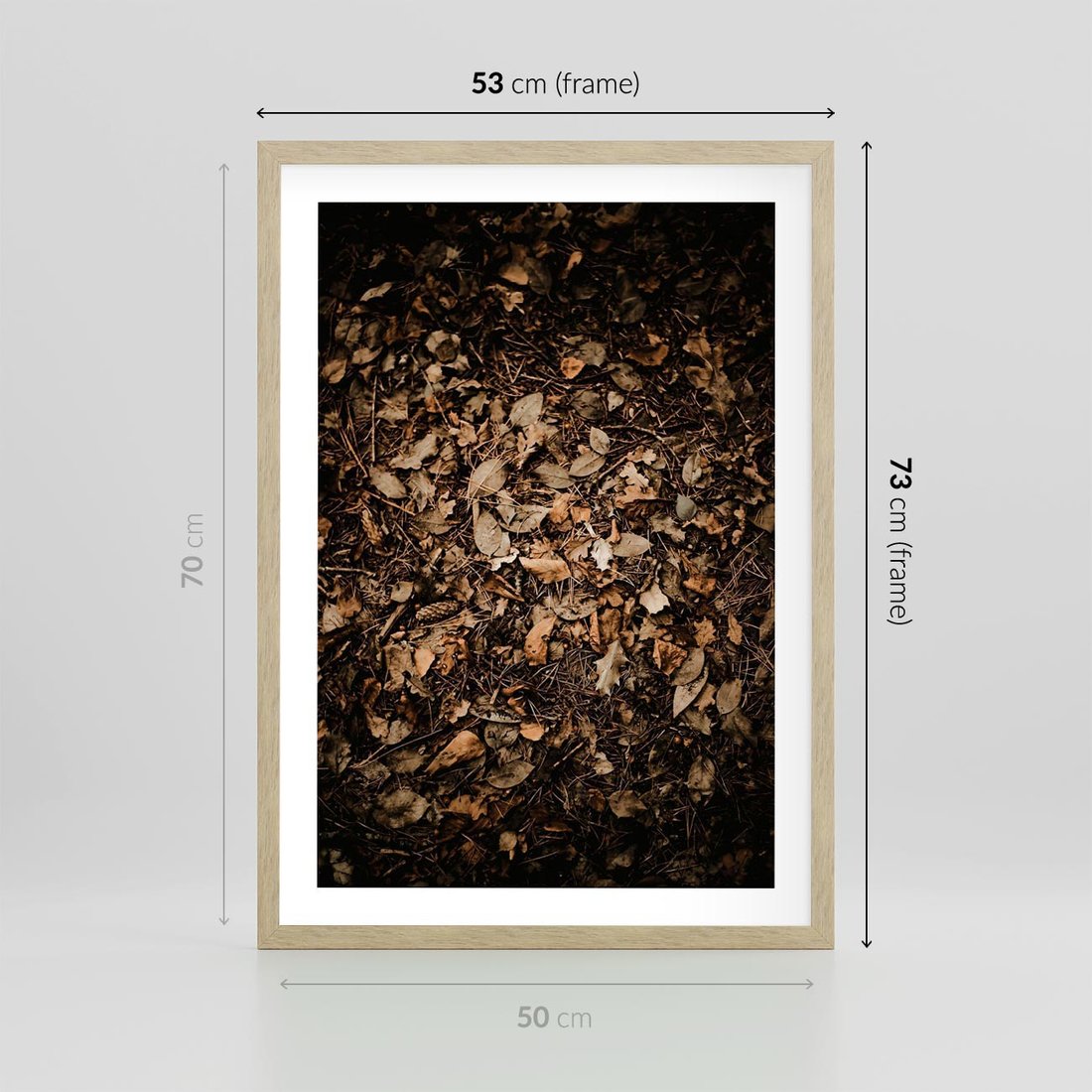 Plakat w ramie 50x70 - Brązowe Liście w Scenerii - suche liście jesień brąz - rama drewno