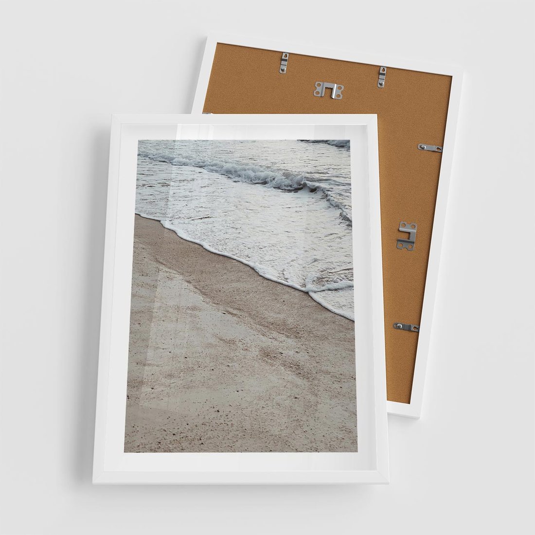 Plakat w ramie 50x70 - Brzeg Morza: Malownicza Plaża i Fale - morze, plaża - rama biała