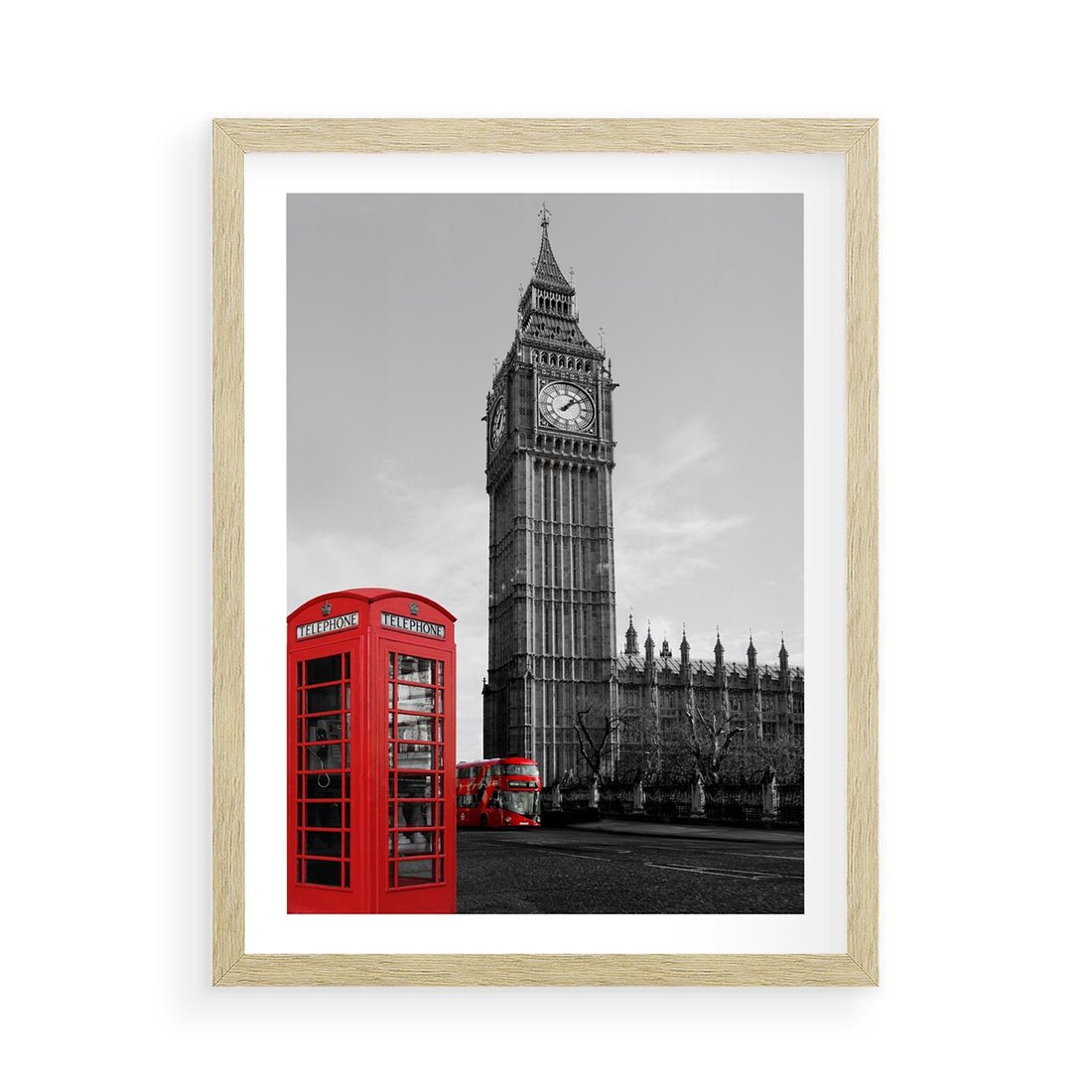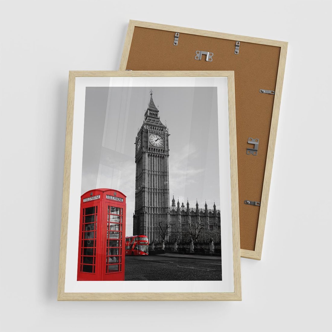 - Plakat w ramie 50x70 - Budka telefoniczna przed Big Benem