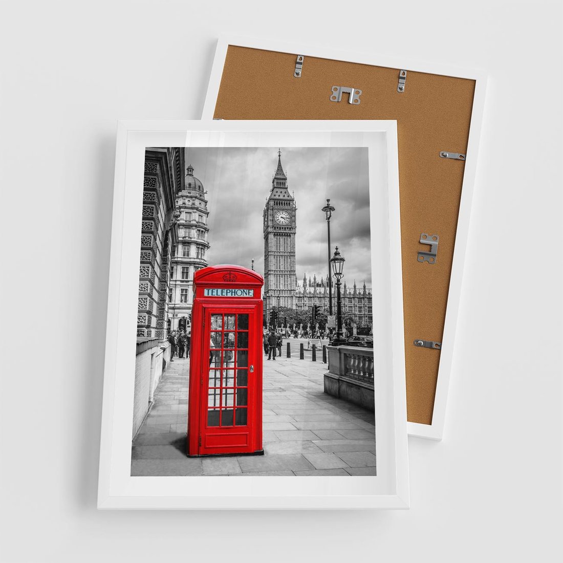 Plakat w ramie 50x70 - Budka telefoniczna w Londynie - budka, Londyn - rama biała
