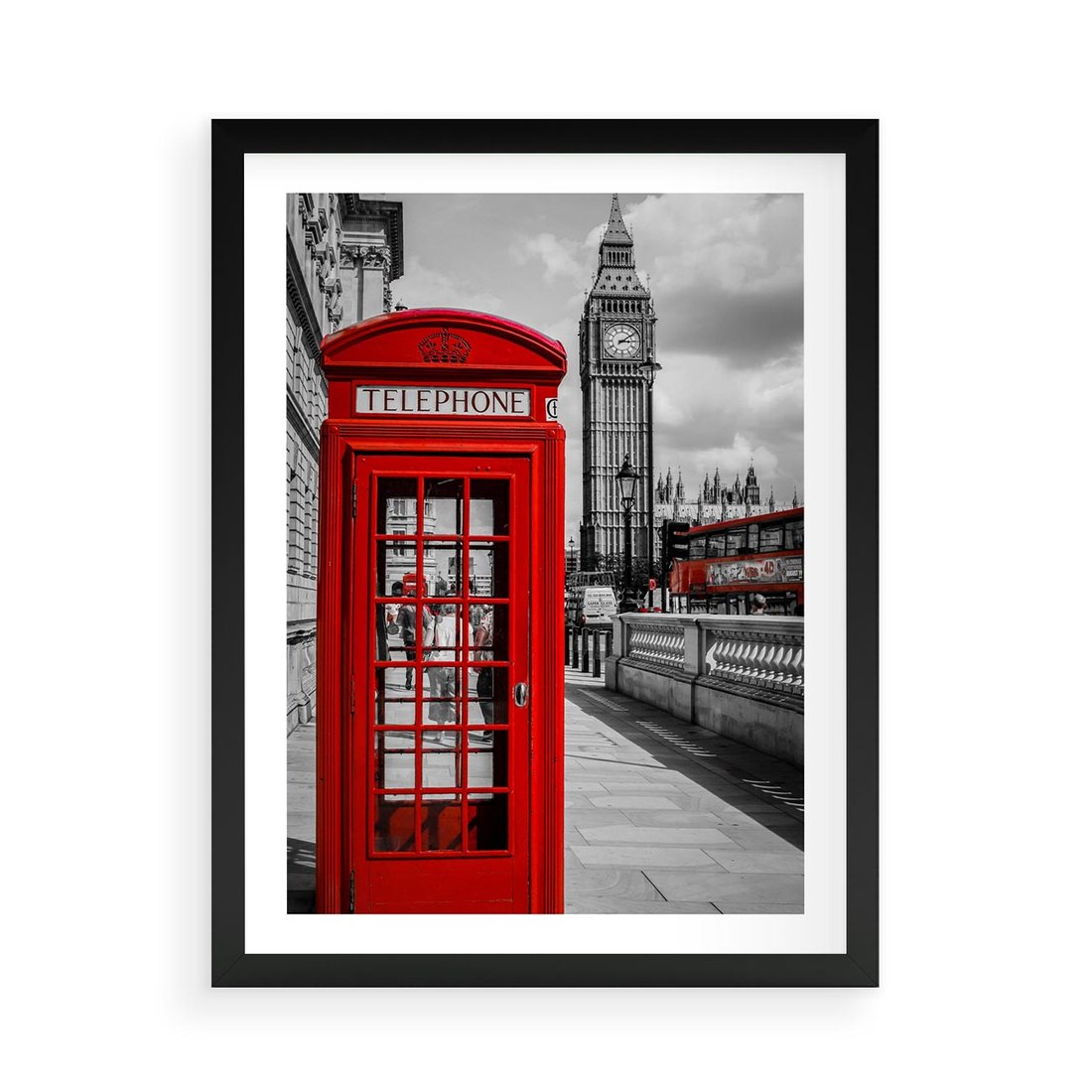 Plakat w ramie 50x70 - Budka w Londynie - Londyn, budka - rama czarna
