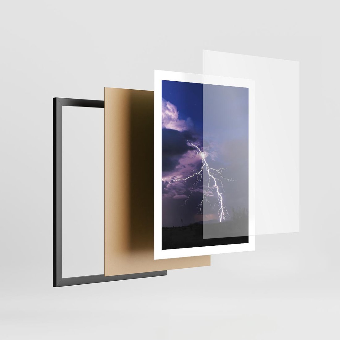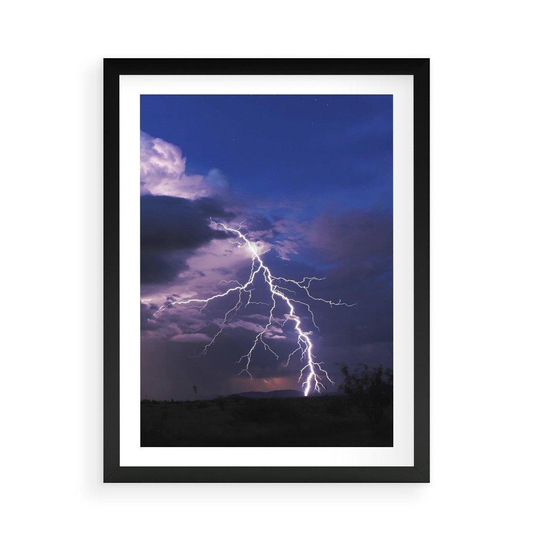 Plakat w ramie 50x70 - Burza z błyskawicami nad horyzontem - burza, błyskawica - rama czarna