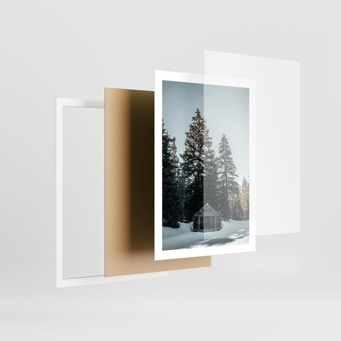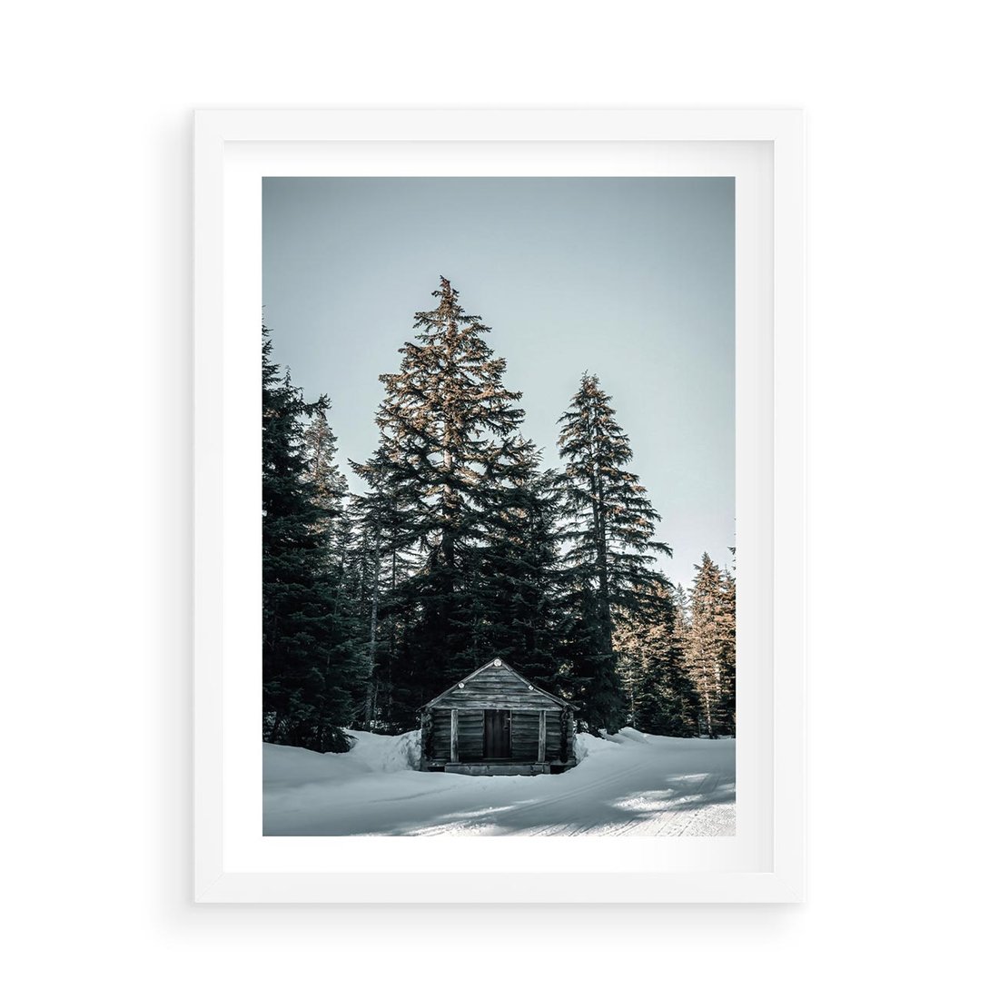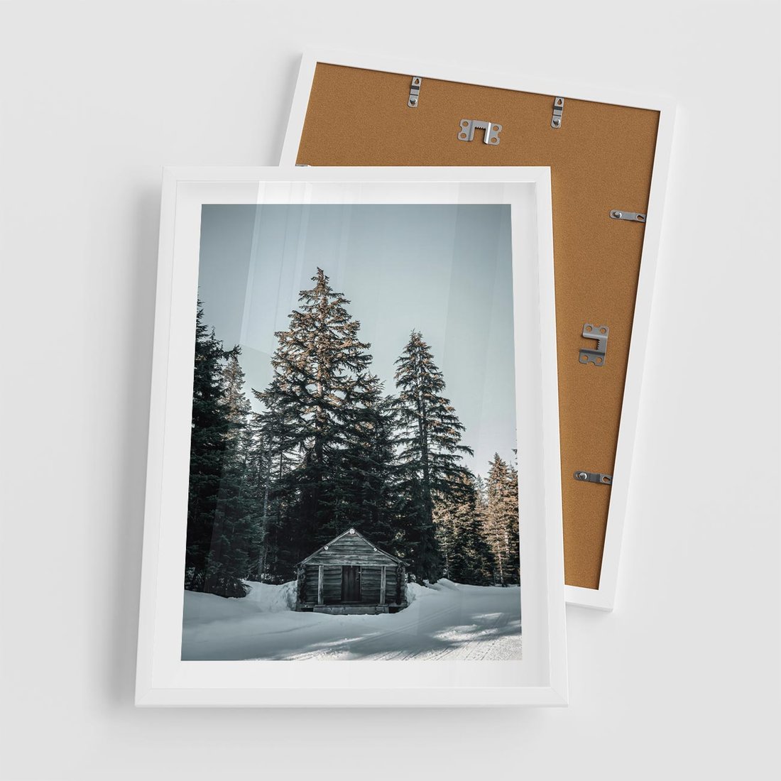 Plakat w ramie 50x70 - Chatka w Górach w Czasie Zimy - chatka w górach, zima - rama biała