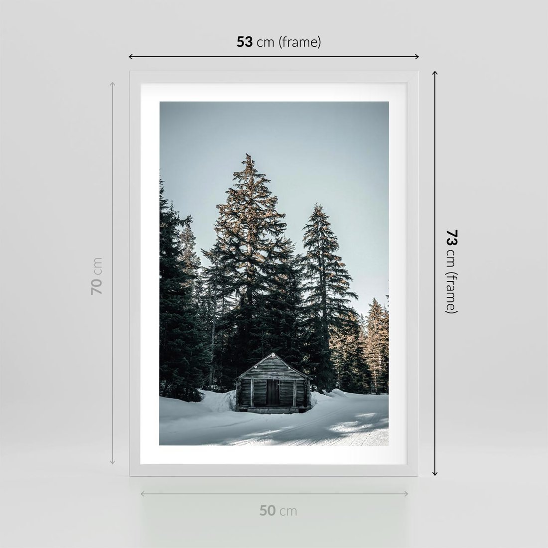- Plakat w ramie 50x70 - Chatka w Górach w Czasie Zimy