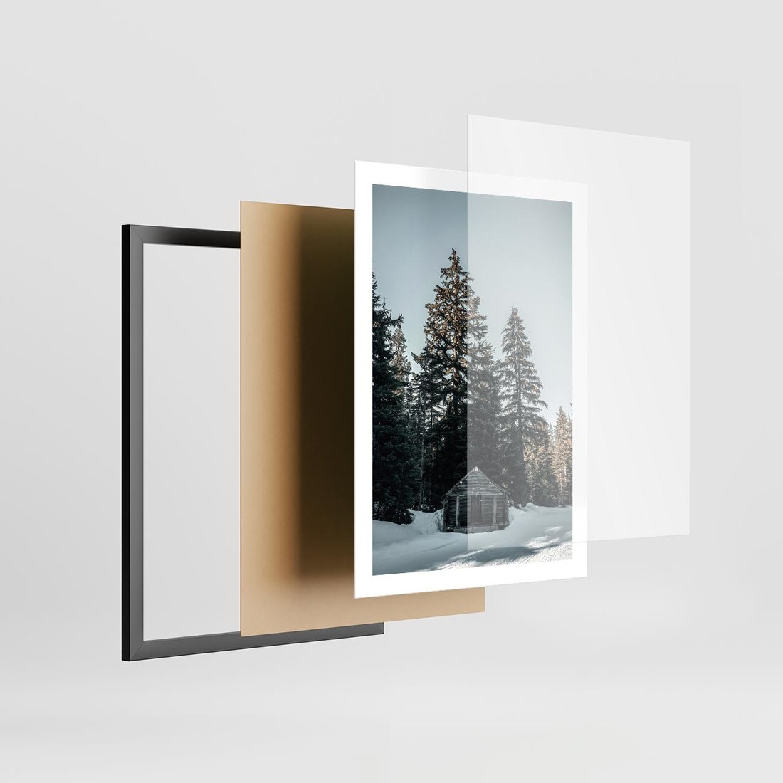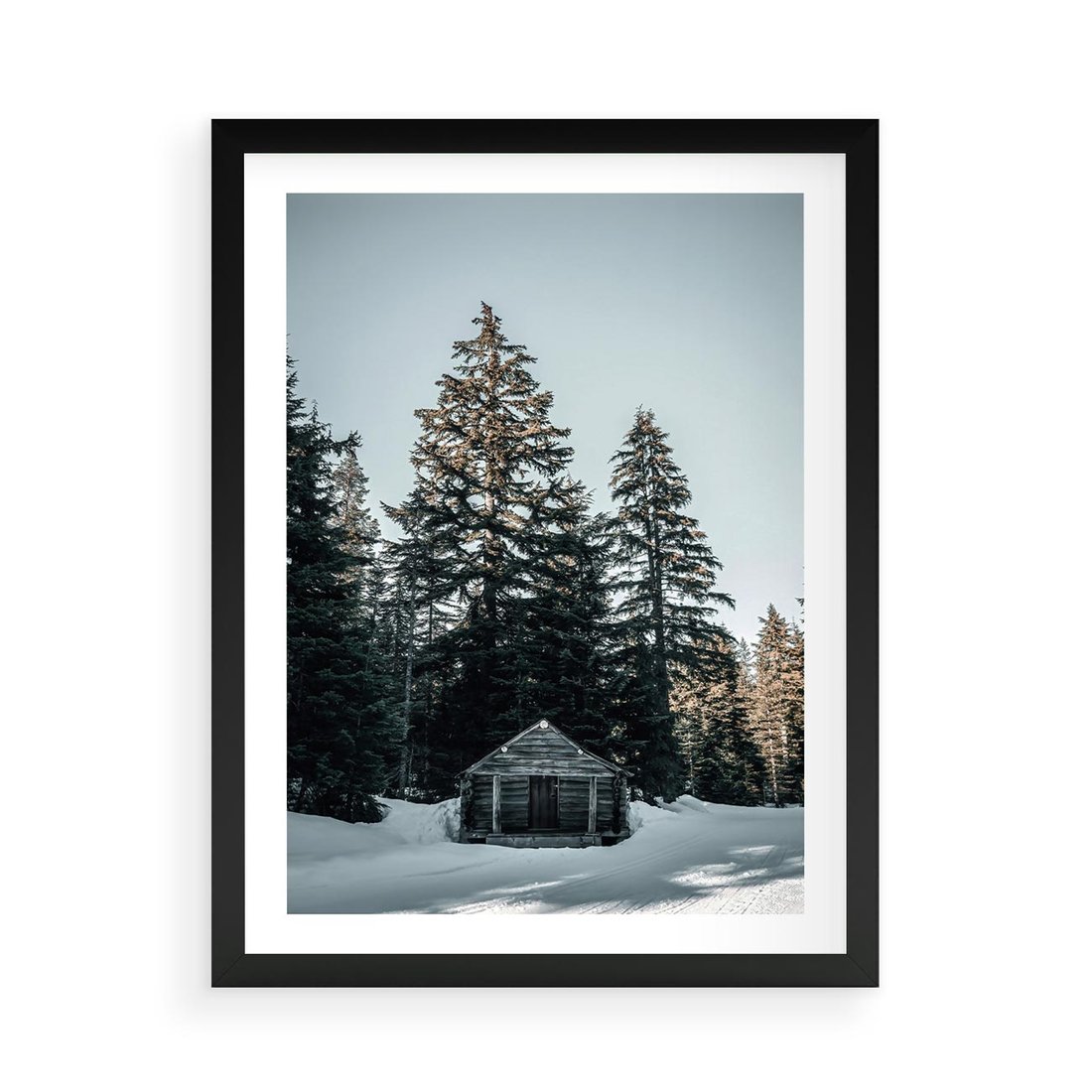 Plakat w ramie 50x70 - Chatka w Górach w Czasie Zimy - chatka w górach, zima - rama czarna