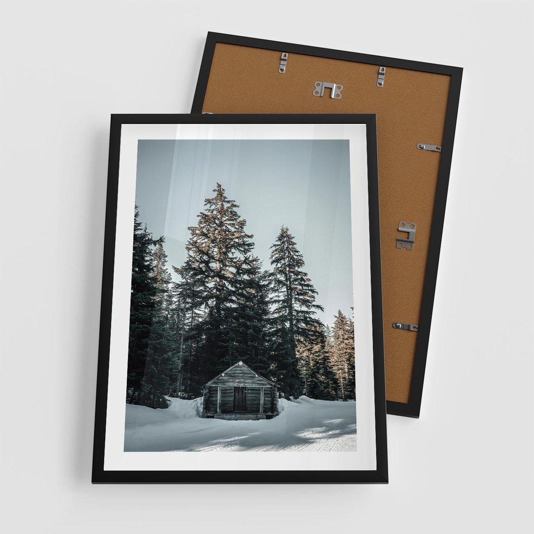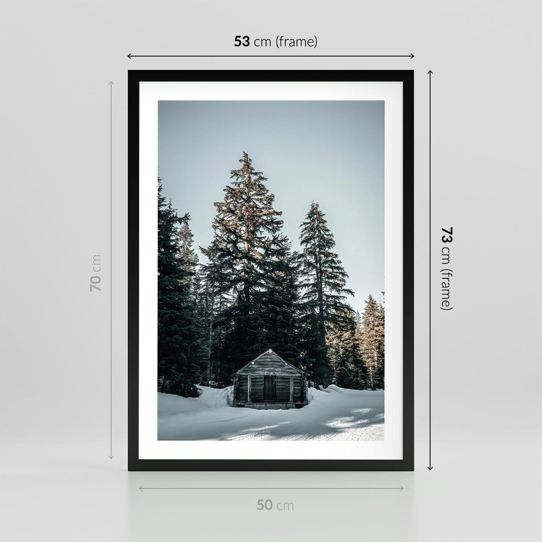 - Plakat w ramie 50x70 - Chatka w Górach w Czasie Zimy