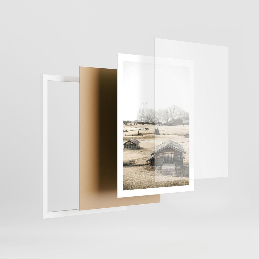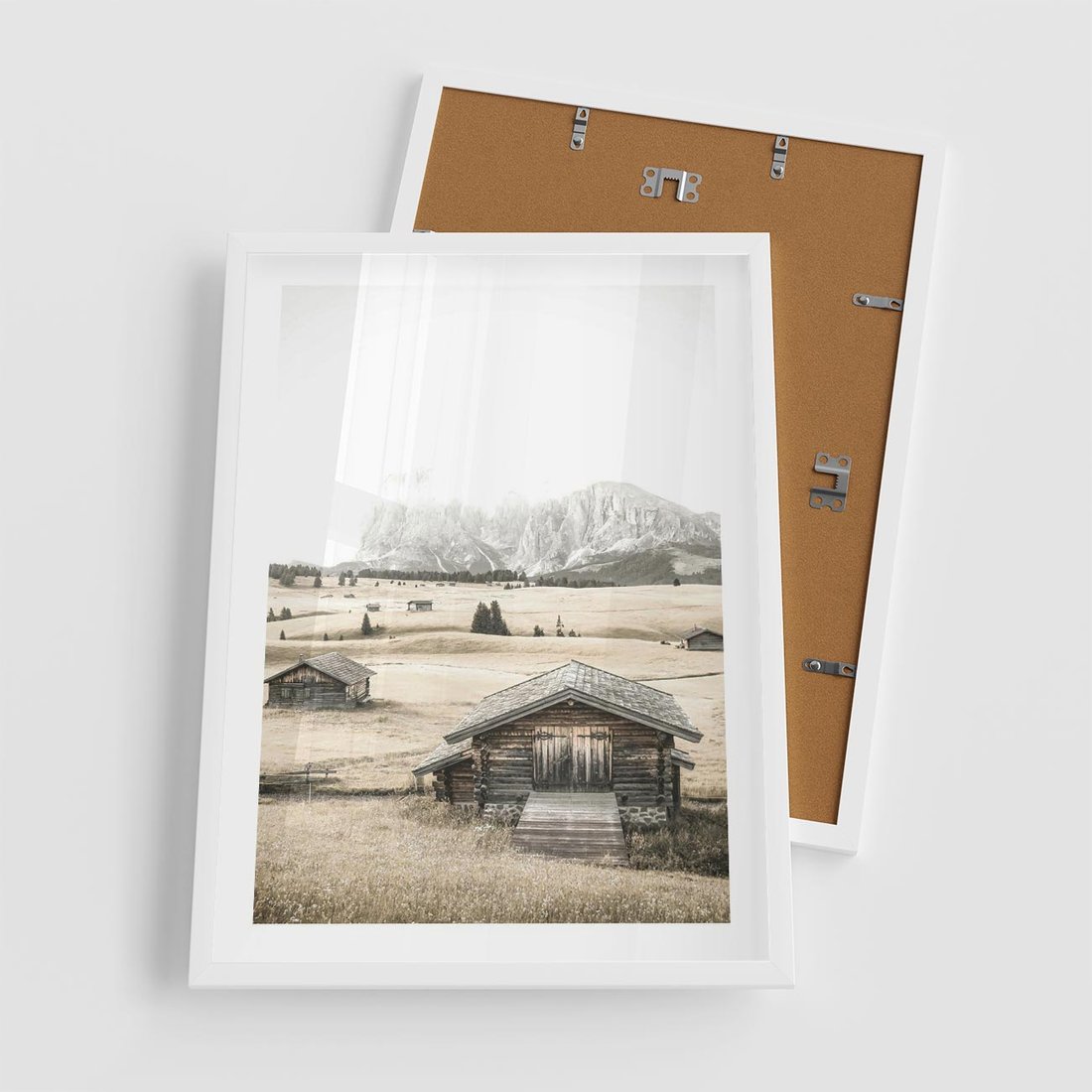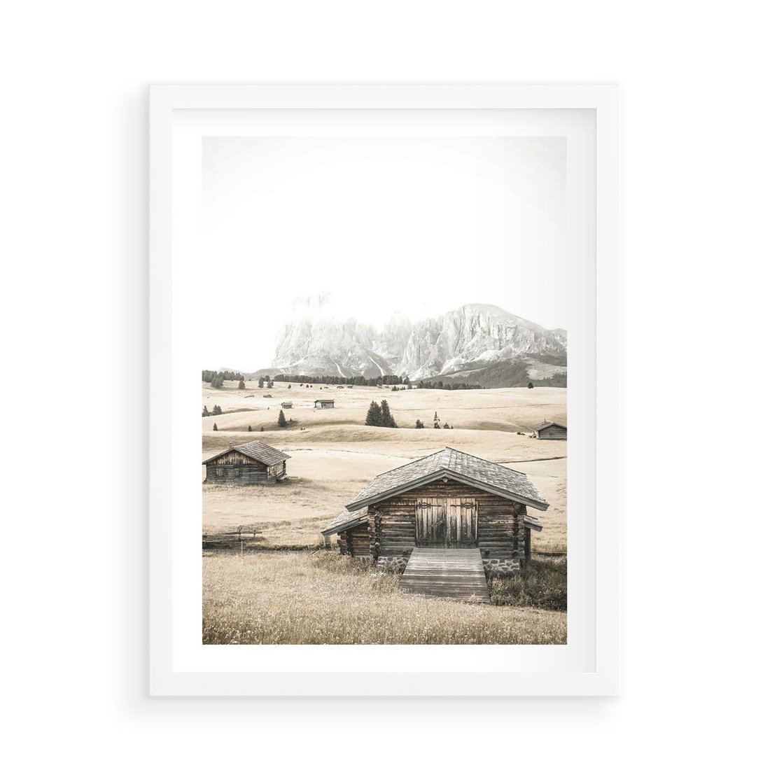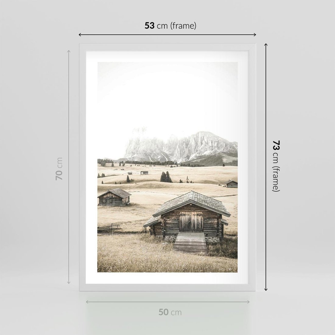 Plakat w ramie 50x70 - Chatka w Górskiej Sepii - domek w górach, chatka - rama biała