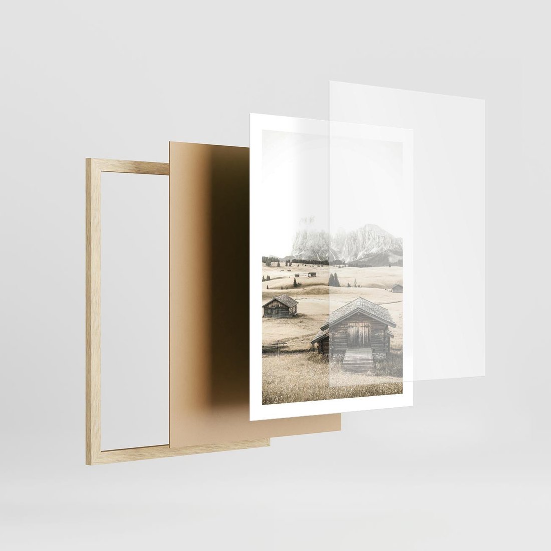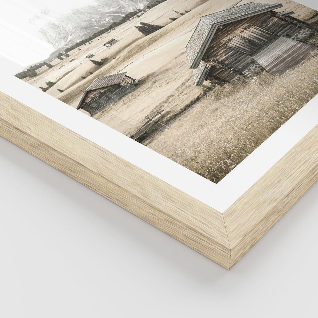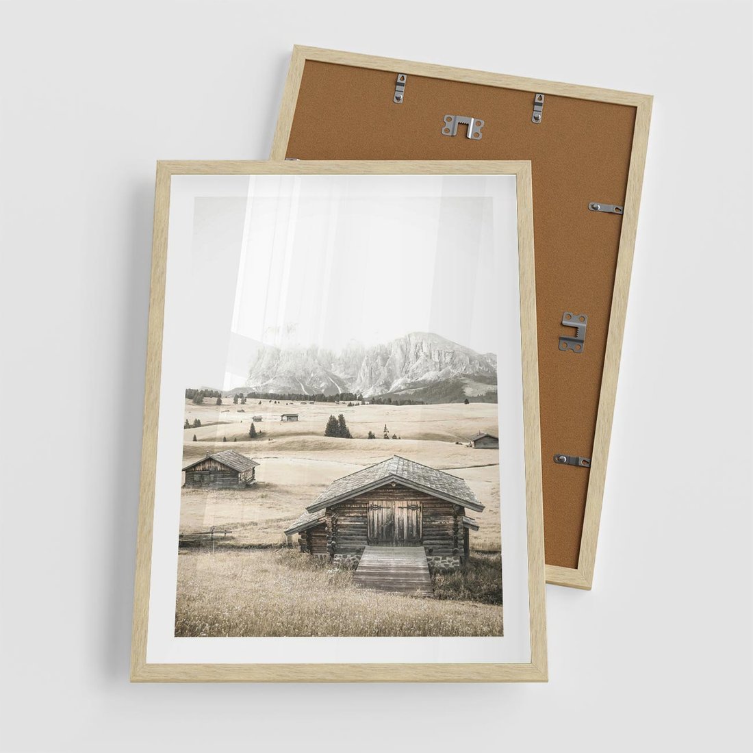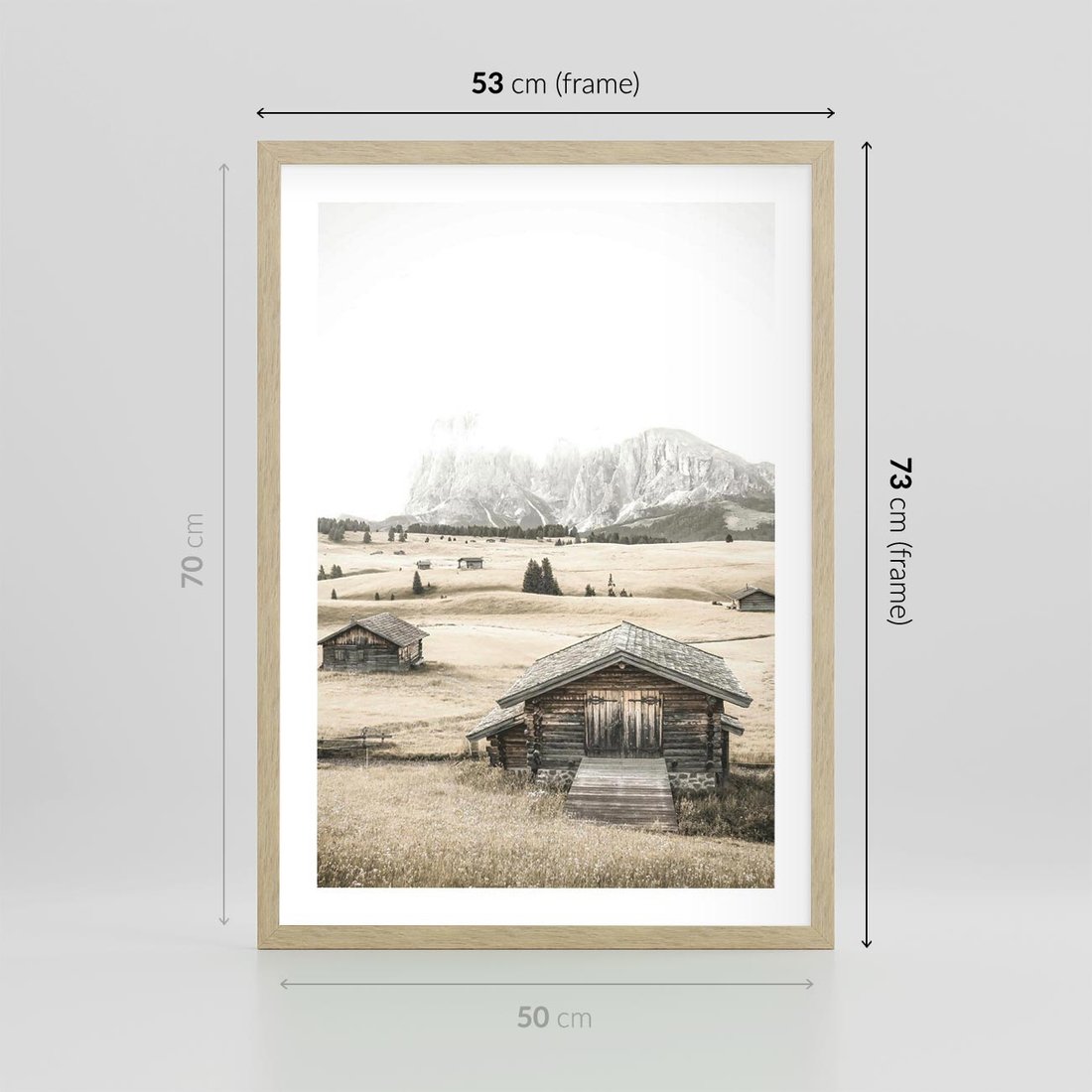 Plakat w ramie 50x70 - Chatka w Górskiej Sepii - domek w górach, chatka - rama drewno