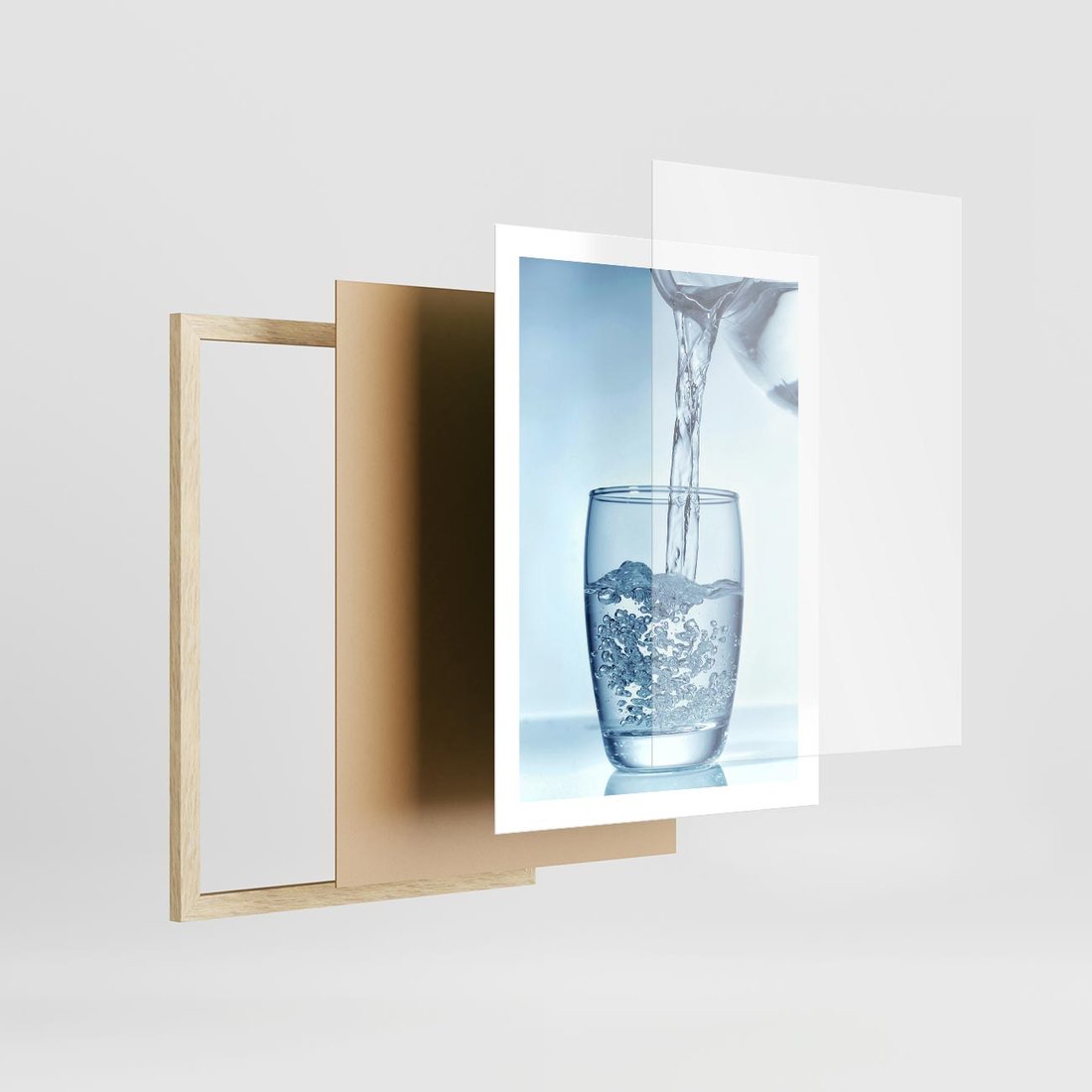 Plakat w ramie 50x70 - Chłodząca szklanka wody - szklanka, wody - rama drewno