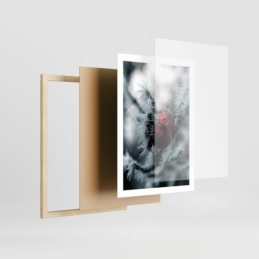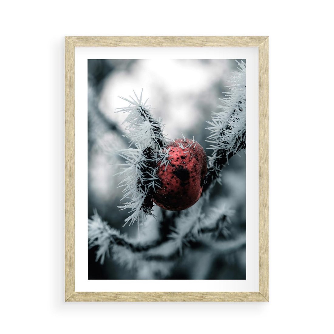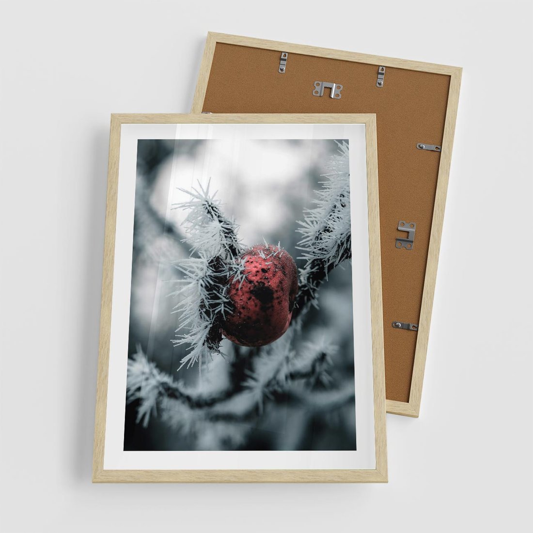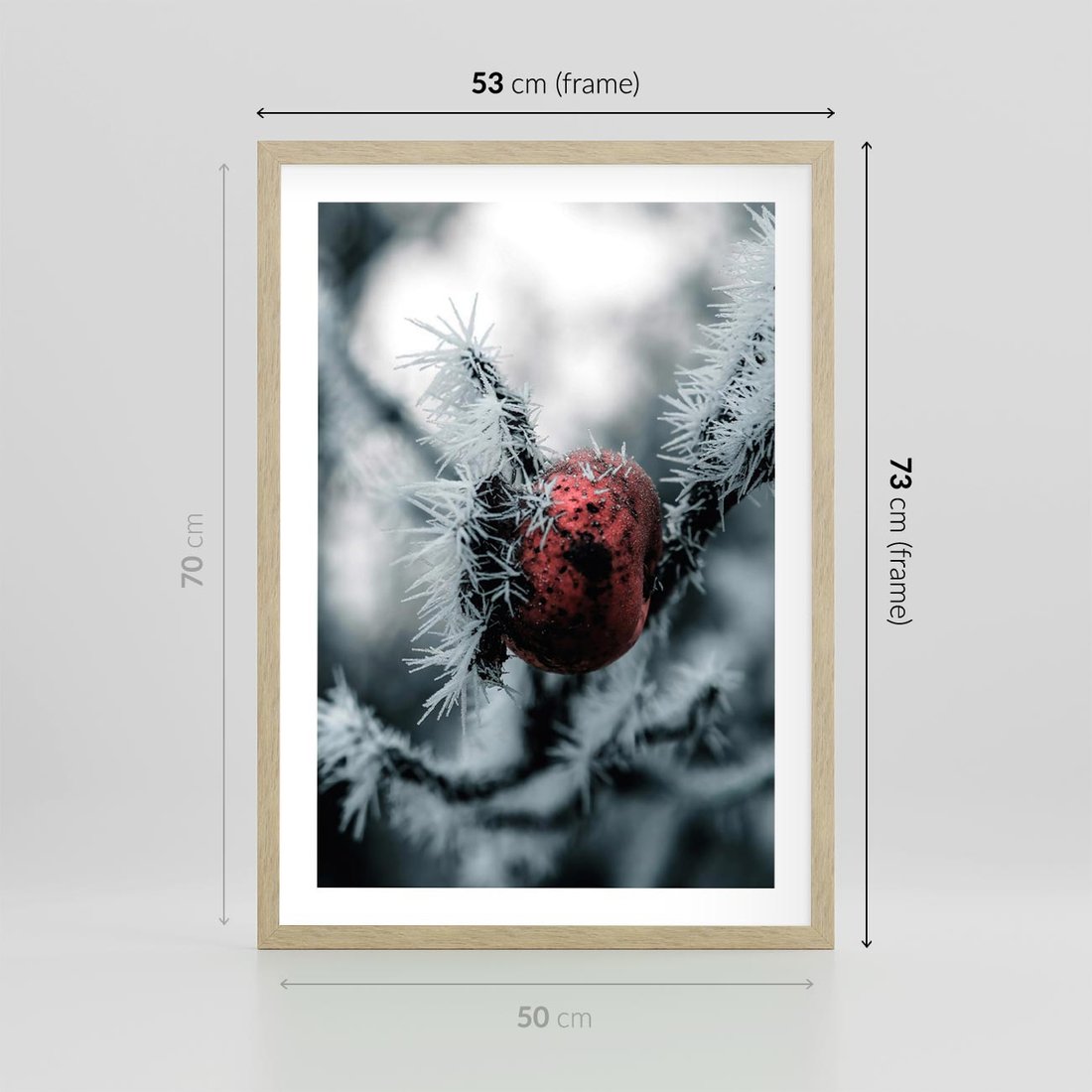 Plakat w ramie 50x70 - Chwila Zimowego Uroku - zima, ośnieżona gałązka - rama drewno
