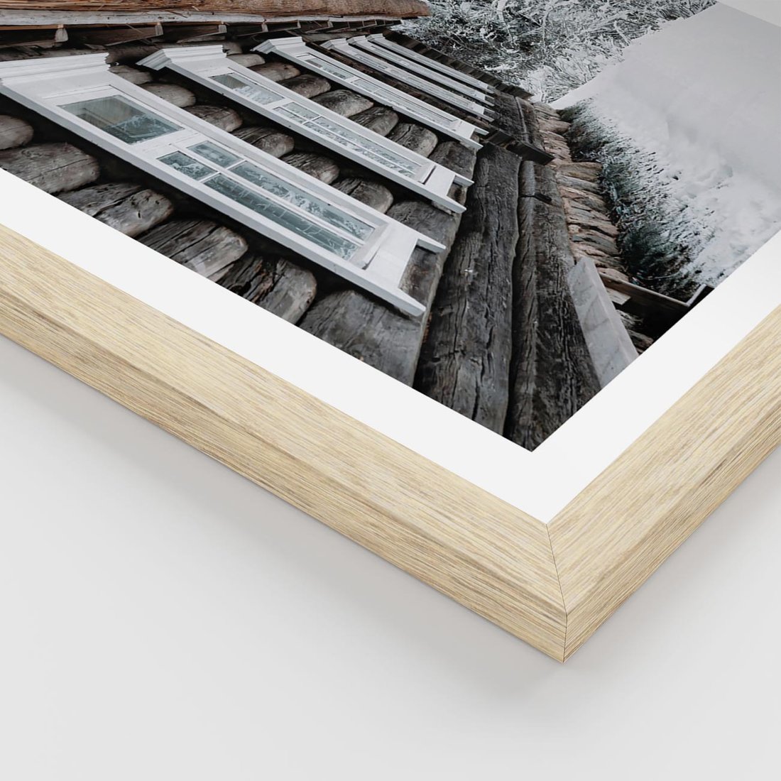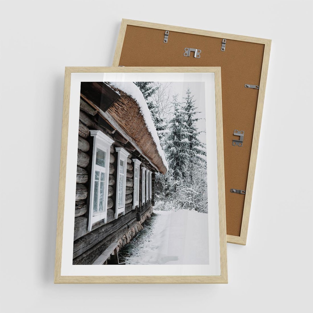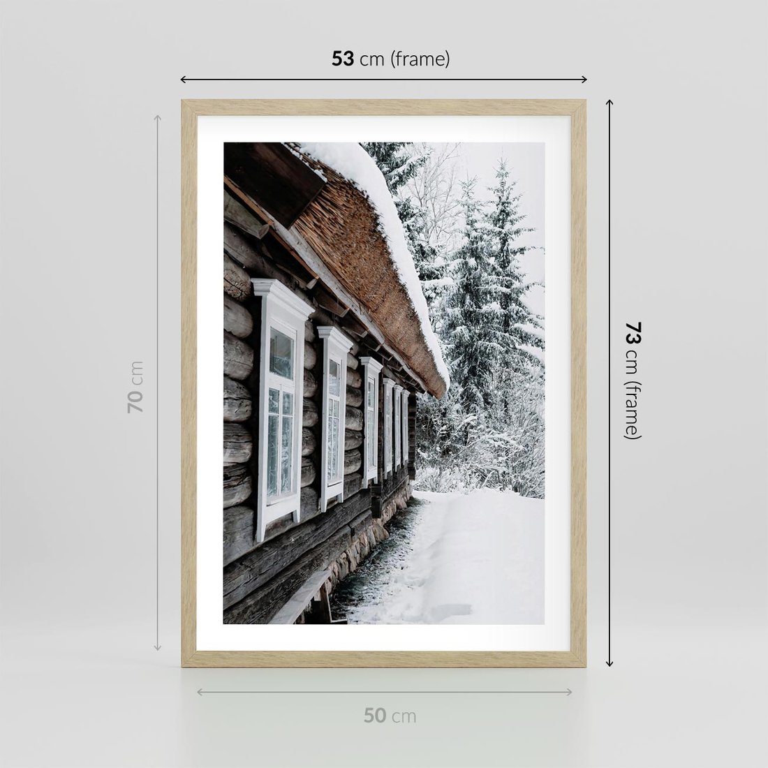 Plakat w ramie 50x70 - Cicha Zima - zima, domek w górach - rama drewno