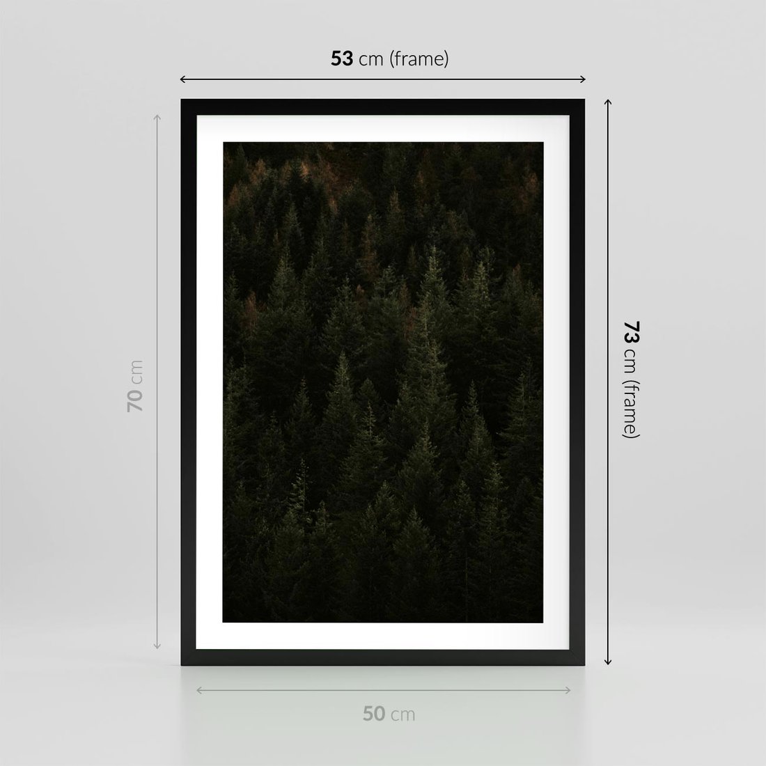 - Plakat w ramie 50x70 - Ciemny las iglasty