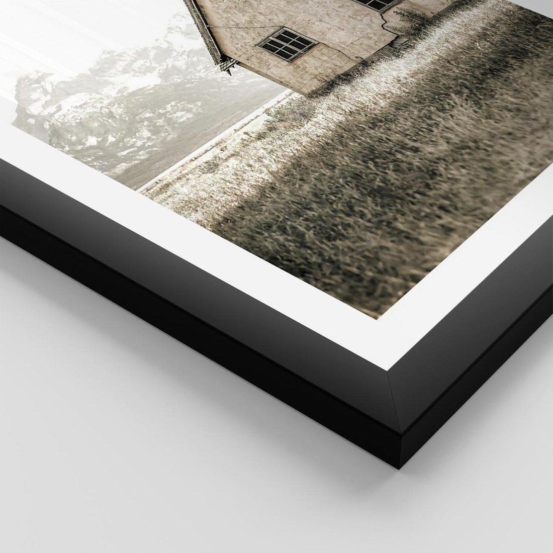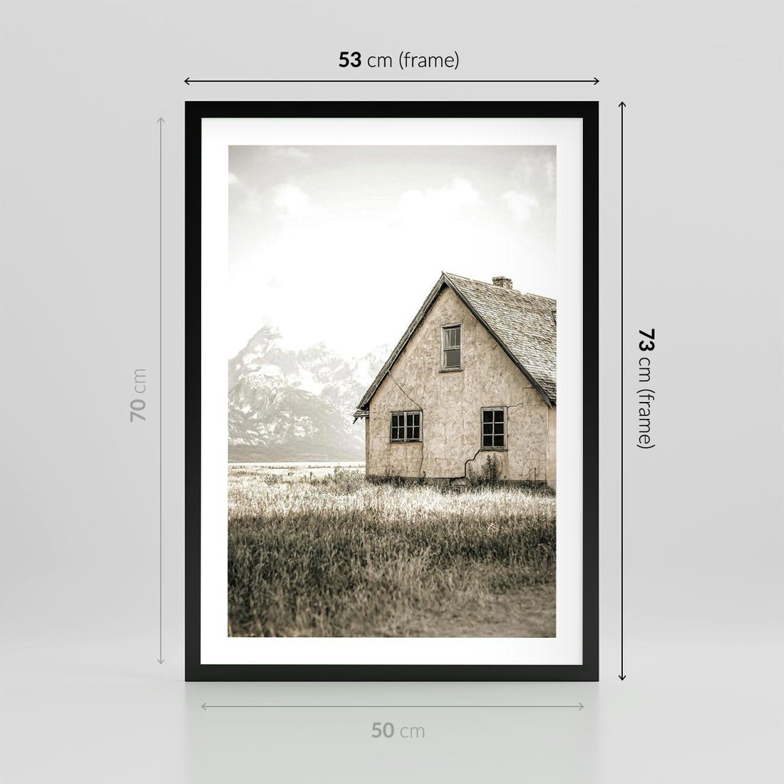 Plakat w ramie 50x70 - Ciepła Atmosfera - dom, stary dom w górach - rama czarna