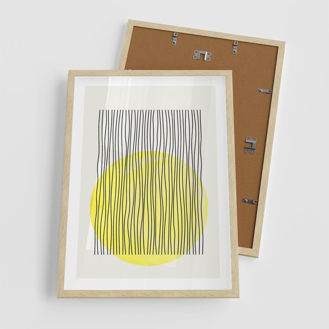 Ten plakat to wyraz minimalistycznego podejścia do sztuki, prezentujący żółte koło w geometrycznym szkicu. To prosty, ale wyrazisty element wprowadza do Twojej przestrzeni harmonię i wyjątkowy akcent artystyczny, idealnie oddający ducha minimalizmu.