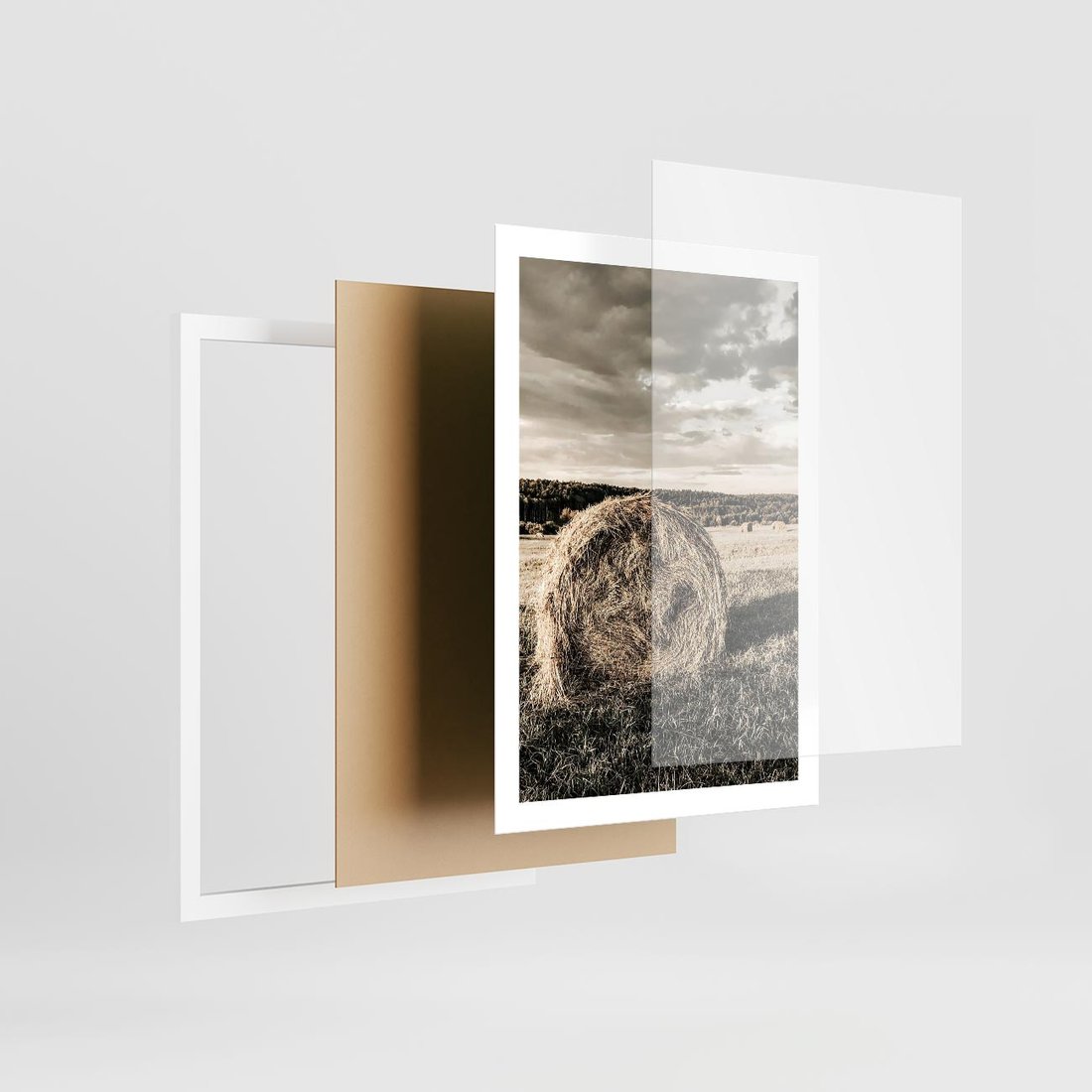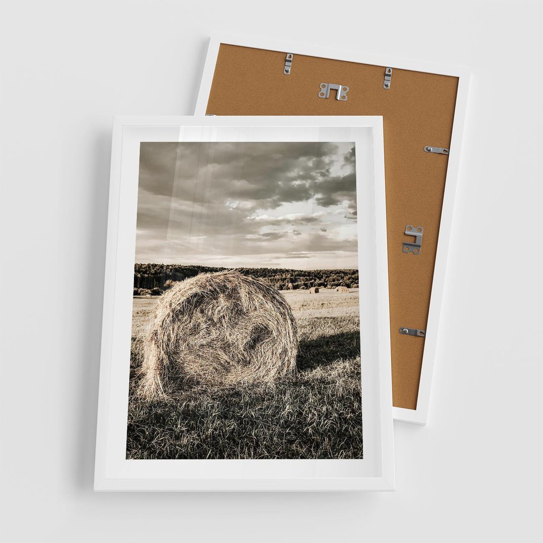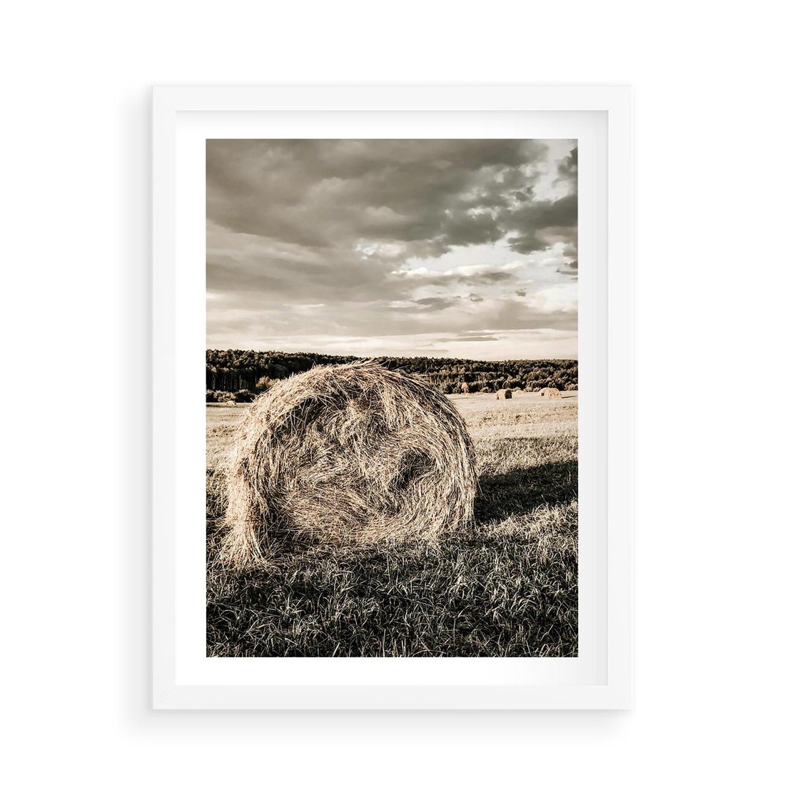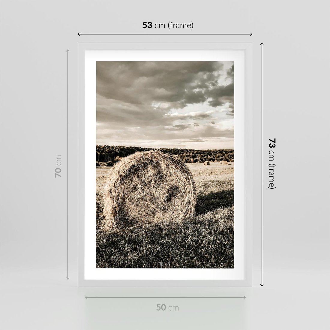 Plakat w ramie 50x70 - Ciepło Natury - snopki siana, pole - rama biała